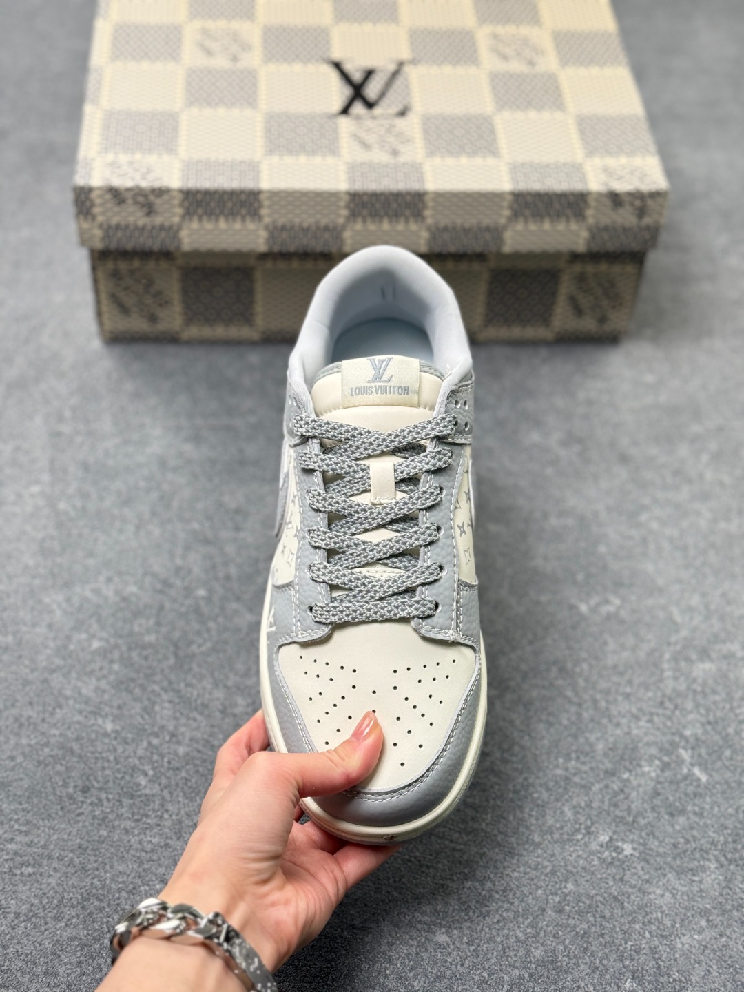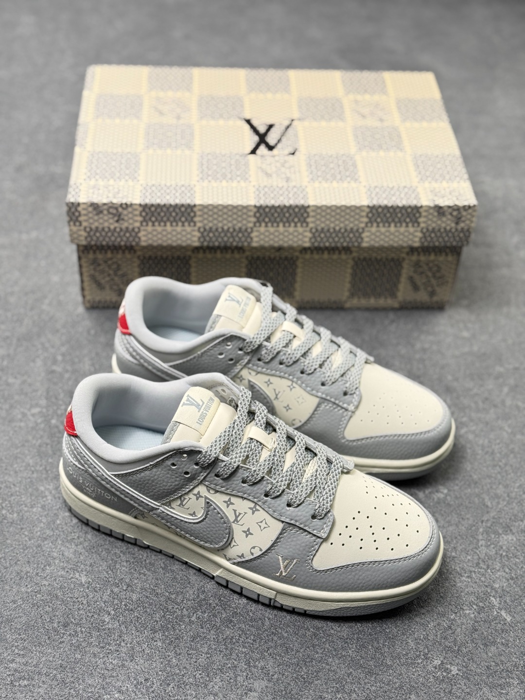 Nike SB Dunk Low LV联名 经典灰白 周年高端定制 低帮休闲板鞋 3M反光 夜光效果 定制鞋盒 大厂纯原品质出货 超高清洁度 皮料切割干净无任何毛边 细节完美
