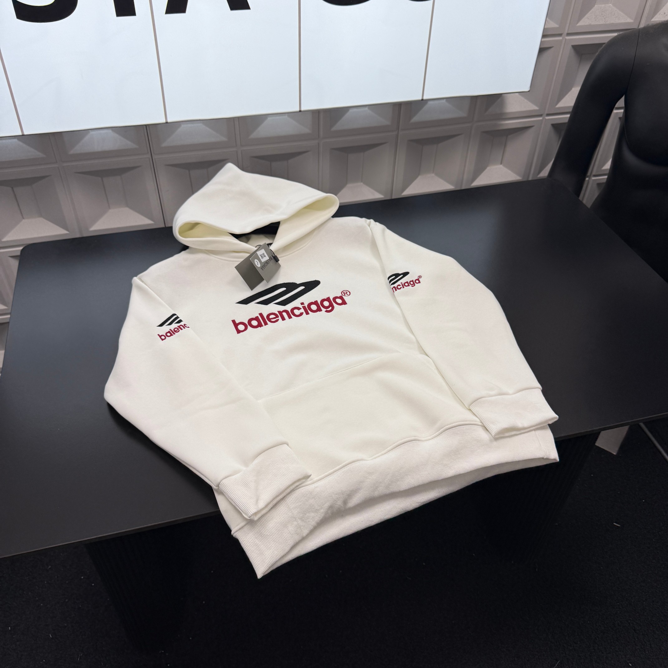 冬季热销爆款网红博主推荐款巴黎世家加绒连帽卫衣 3M刺绣图案 胸前字母刺绣Logo 三标齐全官网一致 放大看细节原相机实物拍摄 颜色 白色 尺码 L 4xl L 80 105斤 XL 105 120斤 2XL 120 140斤 3XL 140 160斤 4XL 160 180斤