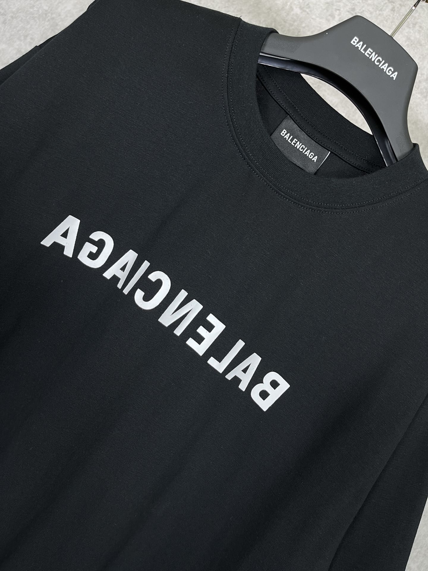 实拍图 顶级版本 官网品质 BALENCI GA 巴黎BALENCI GA 2023春夏季新款 正印反镜像LOGO短袖T恤 2023春夏新品 砖柜同步