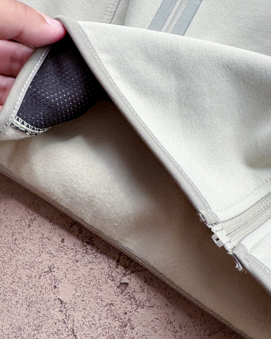 磨毛处理 面料经过磨毛处理 手感柔软 内里抓绒丰盈细密 贴身穿着也十分舒适