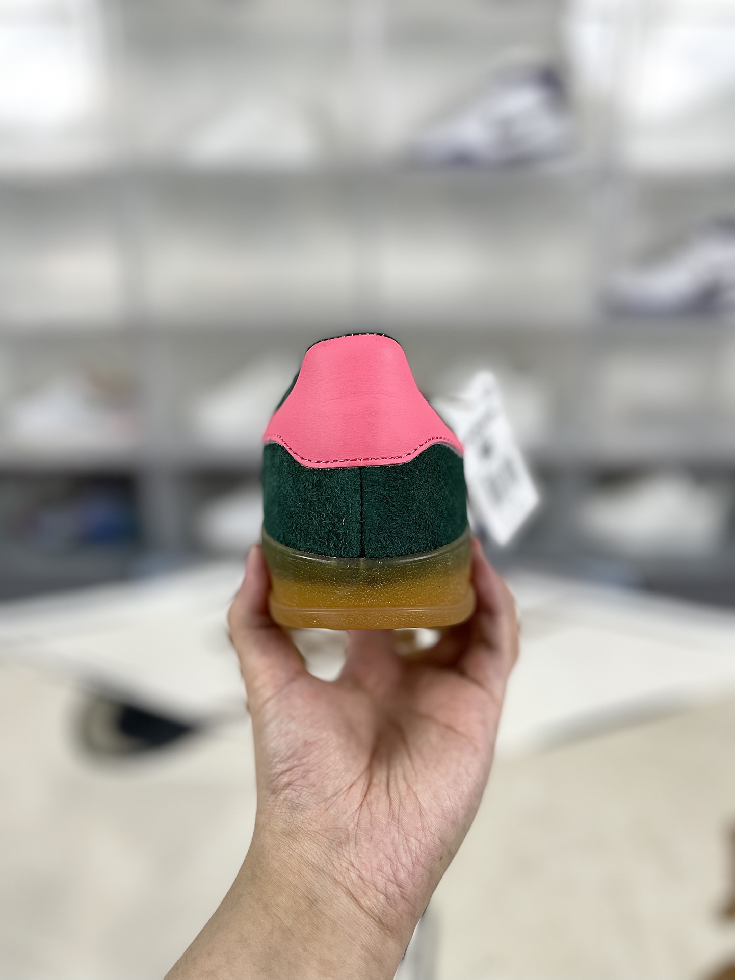 adidas originals GAZELLE 舒适百搭 防滑透气 低帮 板鞋 男女同款 绿粉 德训鞋
