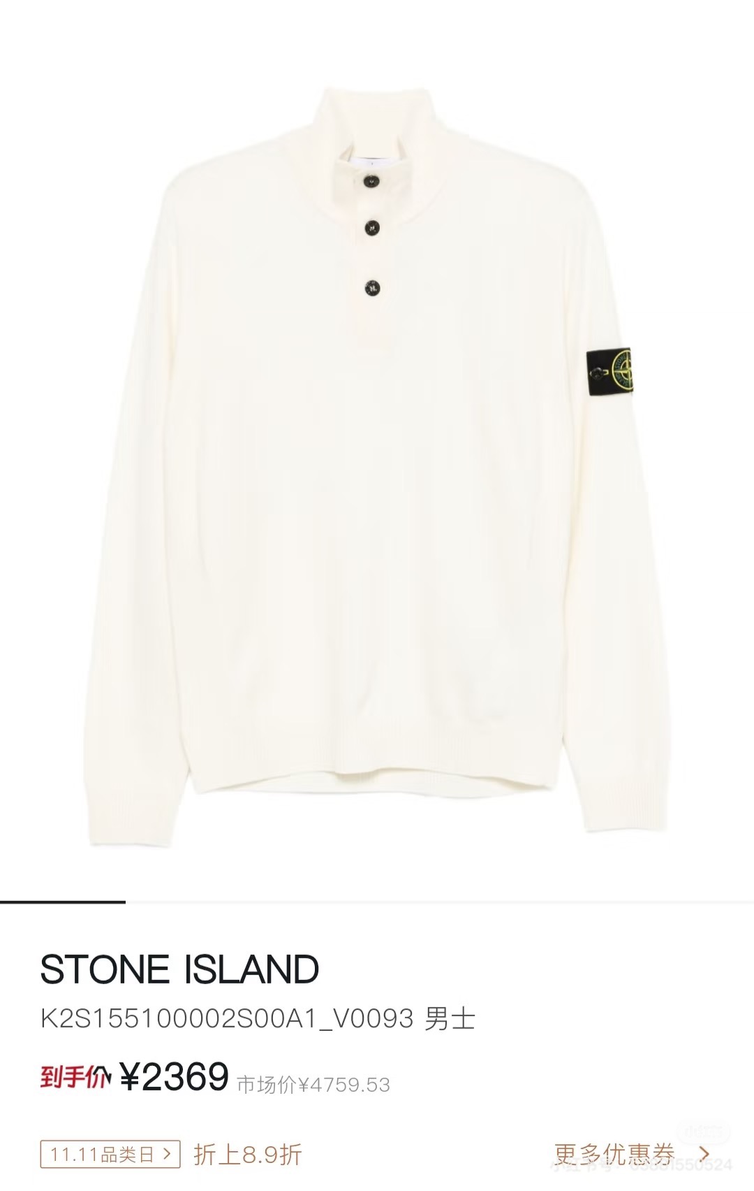 145294035 - 2026新品 Stone Island 石头岛经典半拉三粒扣 490178