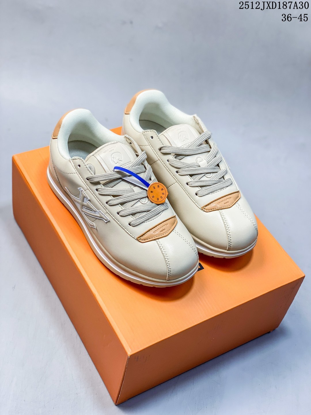 Louis Vuitton 路易威登 升级厚实抽屉礼品鞋盒 采用粒面环保纤维革鞋面材质 嵌入超软脚感EVA物料鞋垫 外置防滑耐磨橡胶大底法国巴黎百年奢侈品牌LV路易威登Louis Vuitton Buttersoft Sneaker Low 极其柔软系列低帮复古面包百搭休闲运动文化篮球板鞋