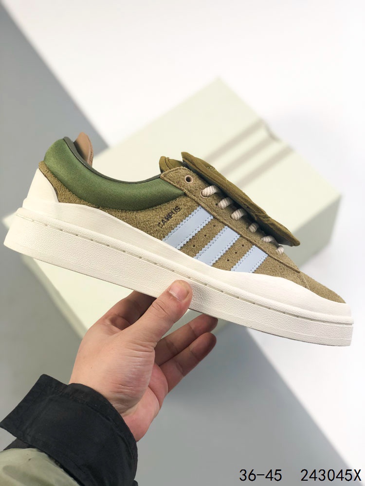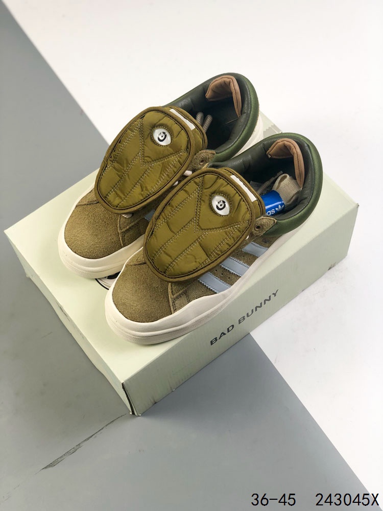 阿迪达斯 ADIDAS BAD BUNNY FORUM SHOES联名款板鞋运动鞋 联手 坏痞兔 打造的adidas Forum经典鞋 Forum 即 平台 是人们表达自我的场所 这款adidas Forum经典鞋 正如它的名字所暗示的那样 为展现个性而生 adidas联手 坏痞兔 Bad Bunny 新鲜演绎经典鞋款 采用皮革鞋面和绒面革饰面 搭配标志性双鞋舌和双鞋跟垫设计 和OG元年款一样 踝部束带跨过鞋带 只是如今辅以插扣设计 配三副鞋带 助你随心挑选喜爱的颜色 配束带和插扣的系带系统 皮革鞋面 织物衬里 橡胶外底