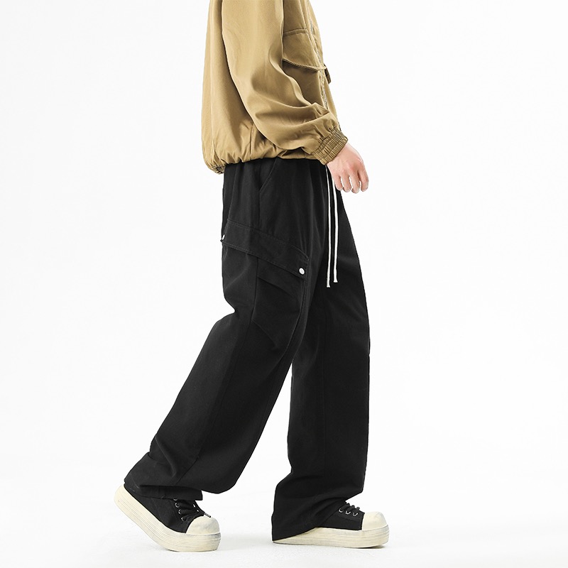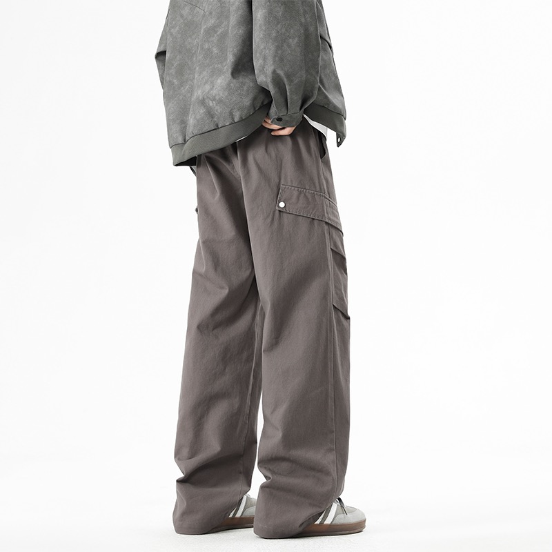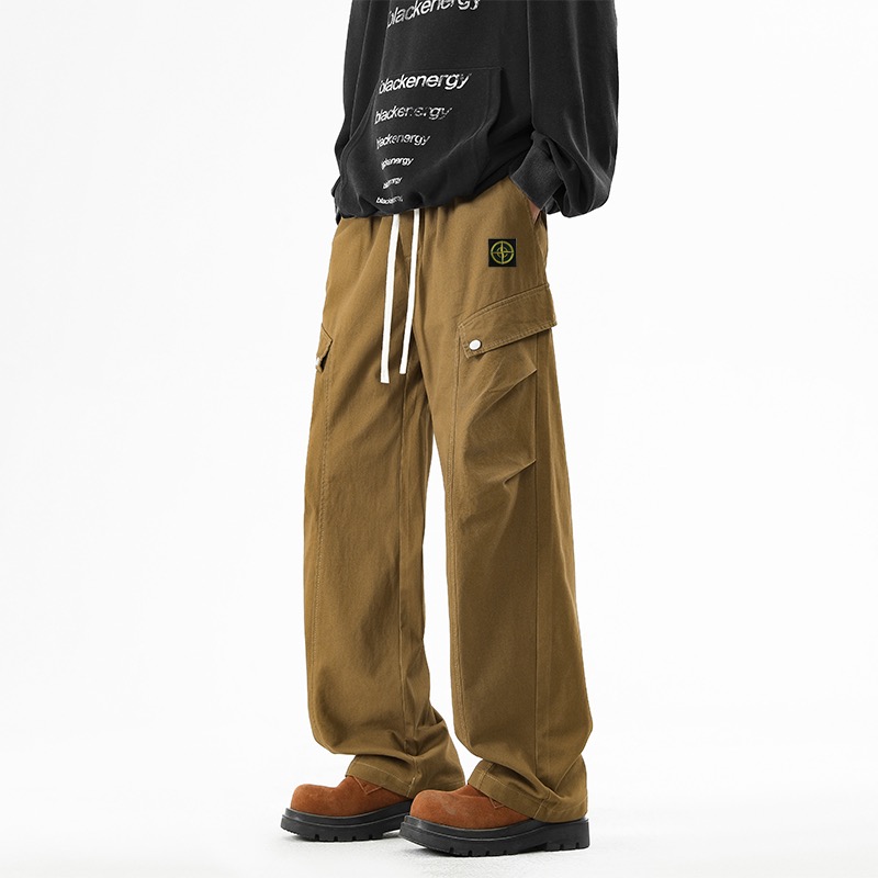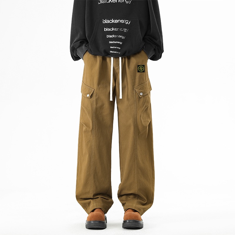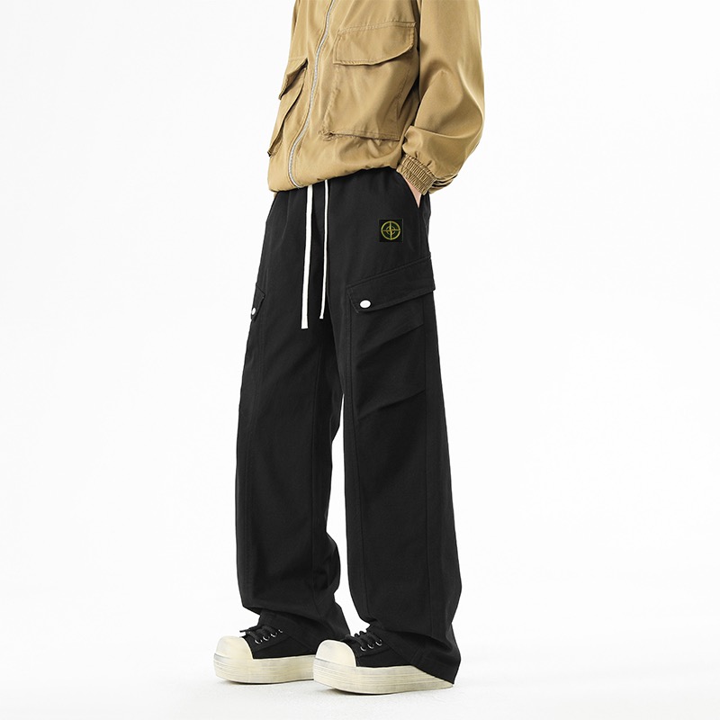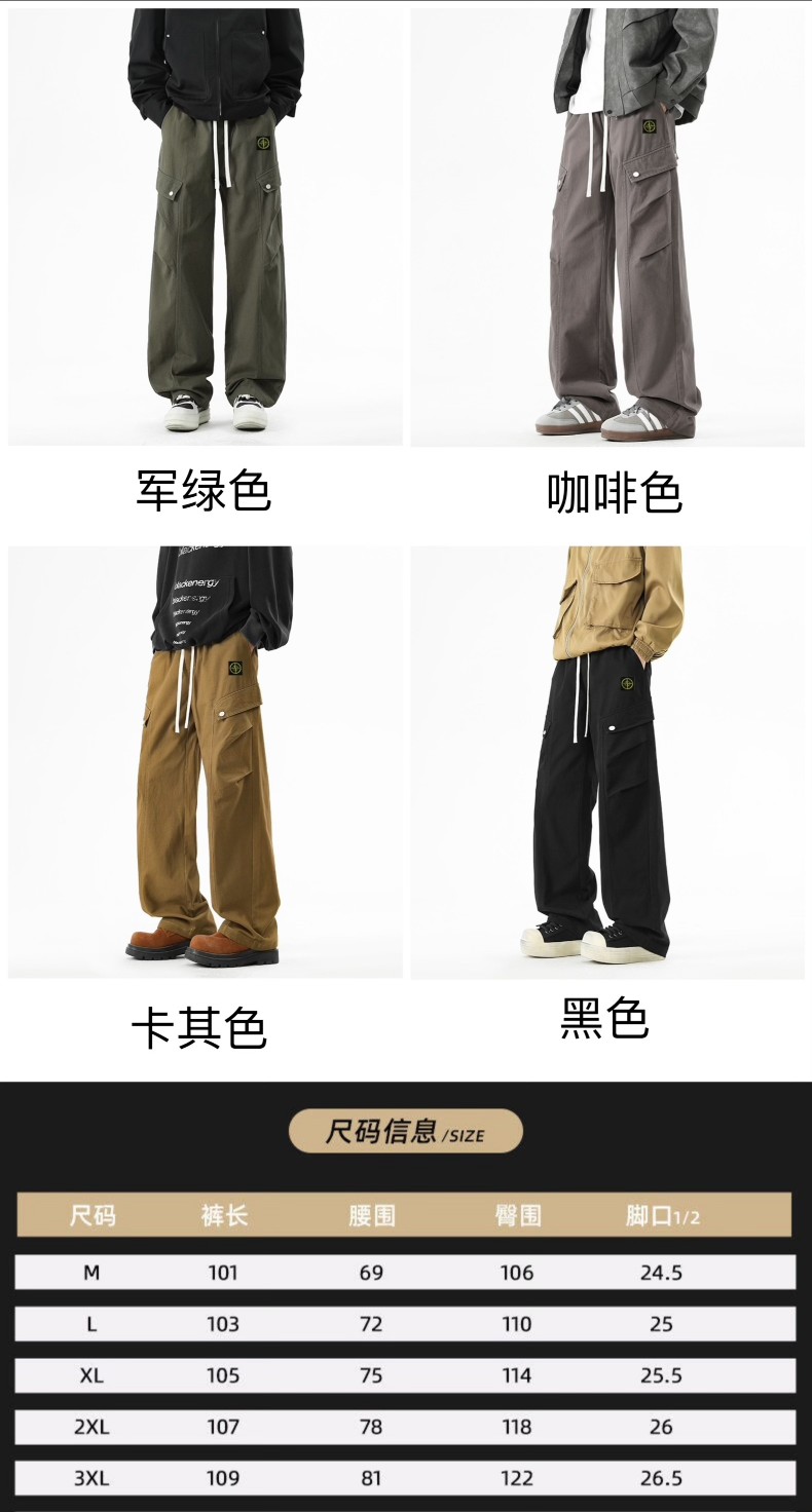 石头岛今年超火的工装裤 原单复刻面料 质感无敌 裤型两侧排扣式立体工装斜口袋设计 插兜处石头岛刺绣贴标设计