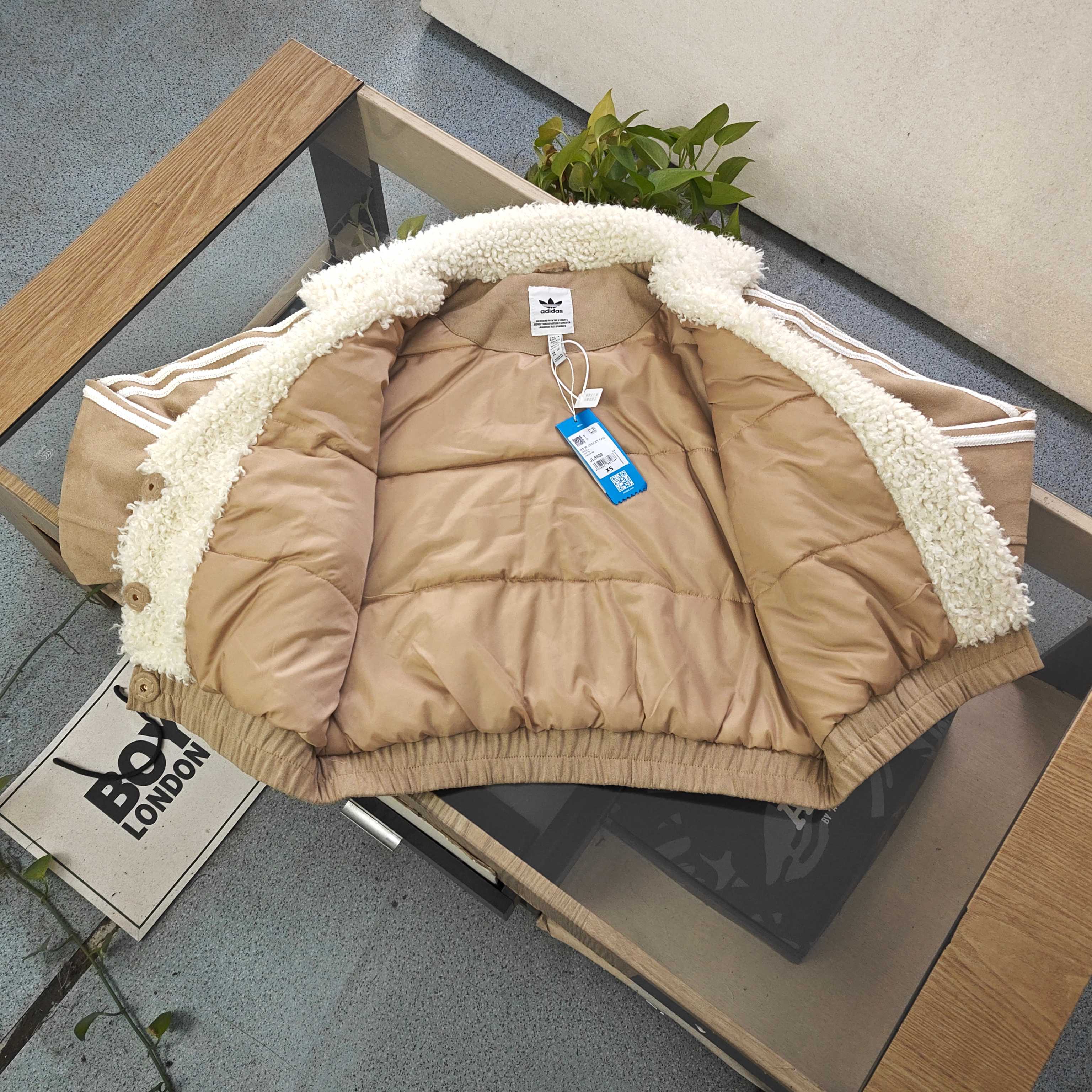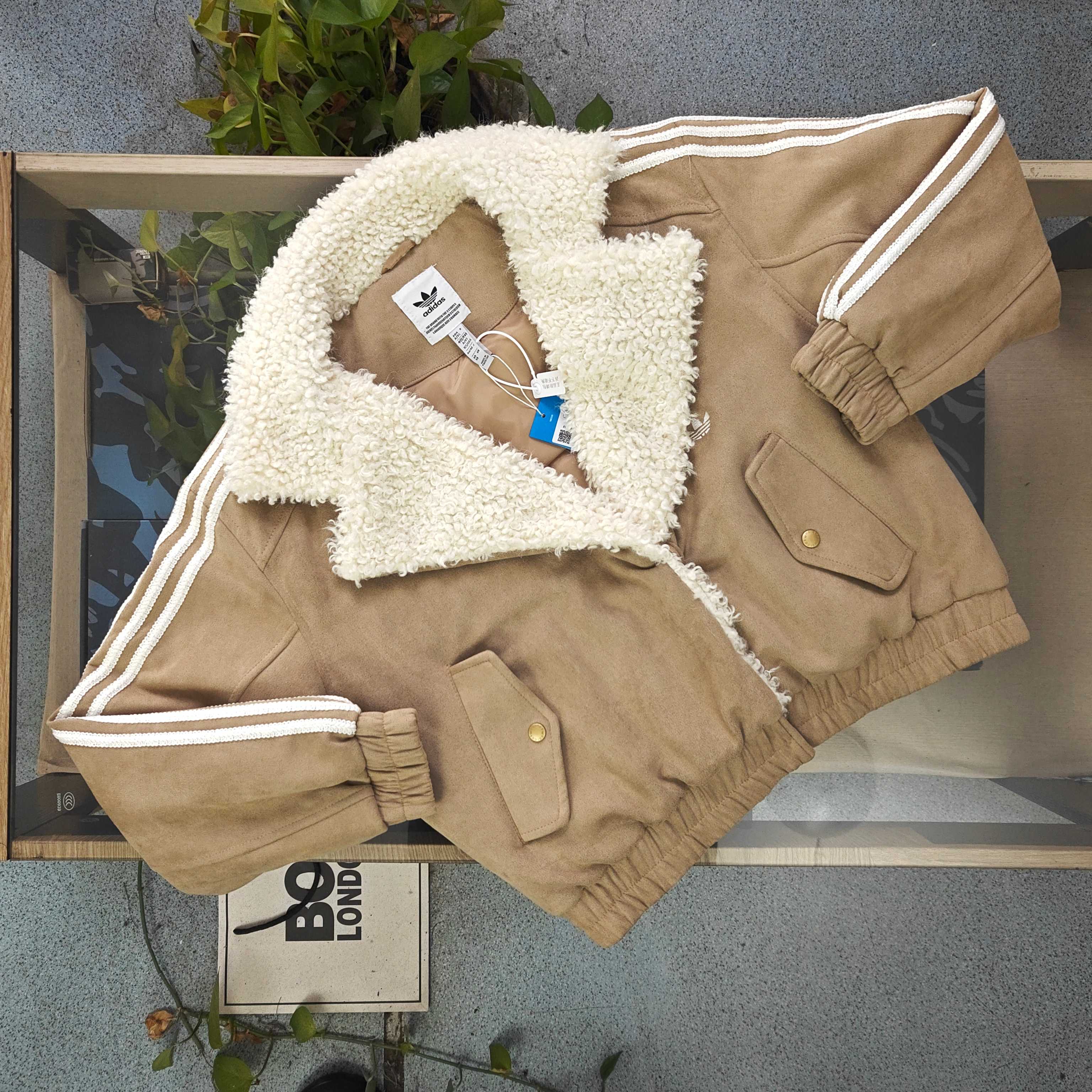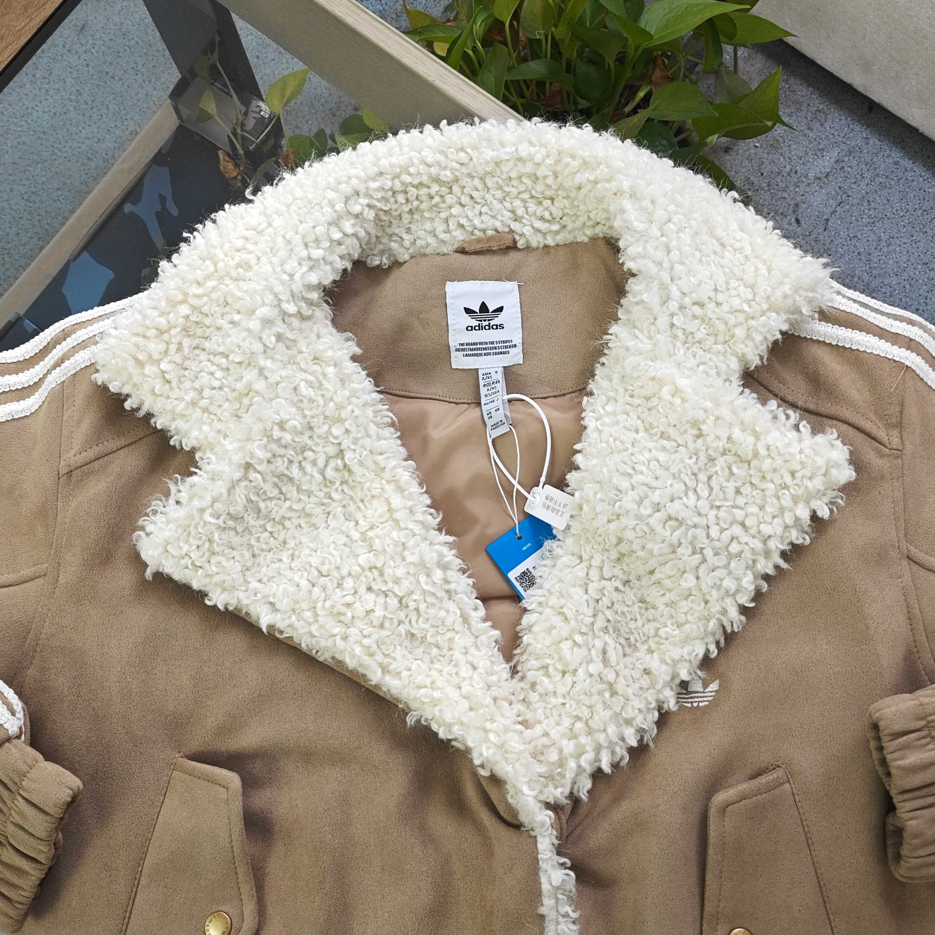 2025新款Adidas阿迪达斯三道杠刺绣logo女士麂皮羊羔毛外套 冬日复古氛围感拉满