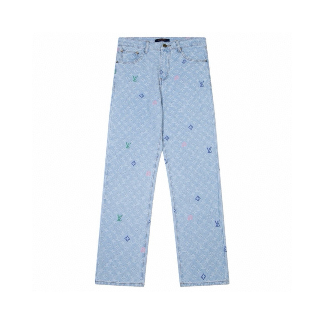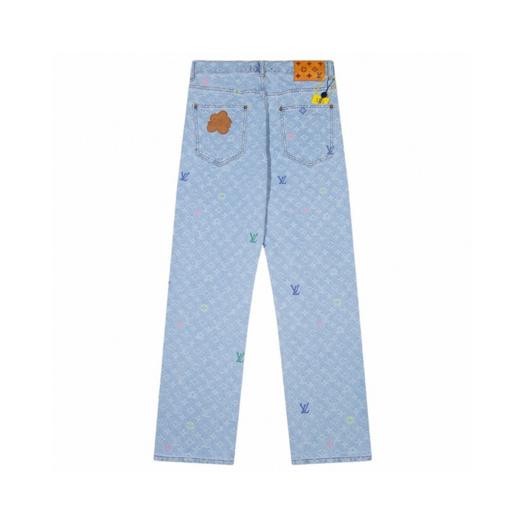 Louis Vuitton LV x Tyler 路易威登联名款 24ss 彩色字母 logo 刺绣老花满印纽扣口袋牛仔裤休闲直筒裤 顶级原单版本