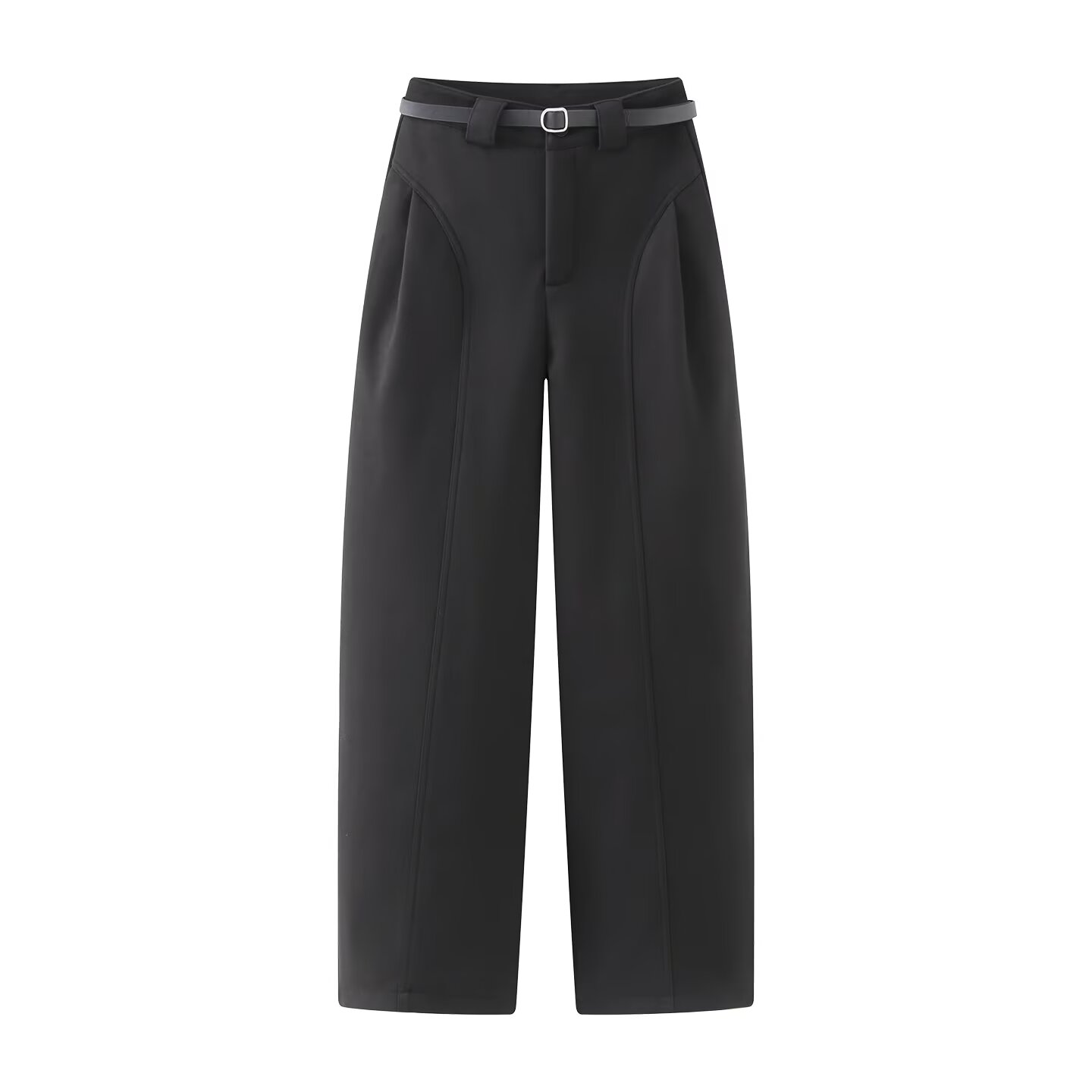 细节处更是用心 搭配同色系质感纽扣 腰间附赠黑色细腰带 可自由调节松紧 勾勒腰线的同时增添造型感 立体的缝线设计让裤型更挺括 通勤 日常出街穿都利落又大气