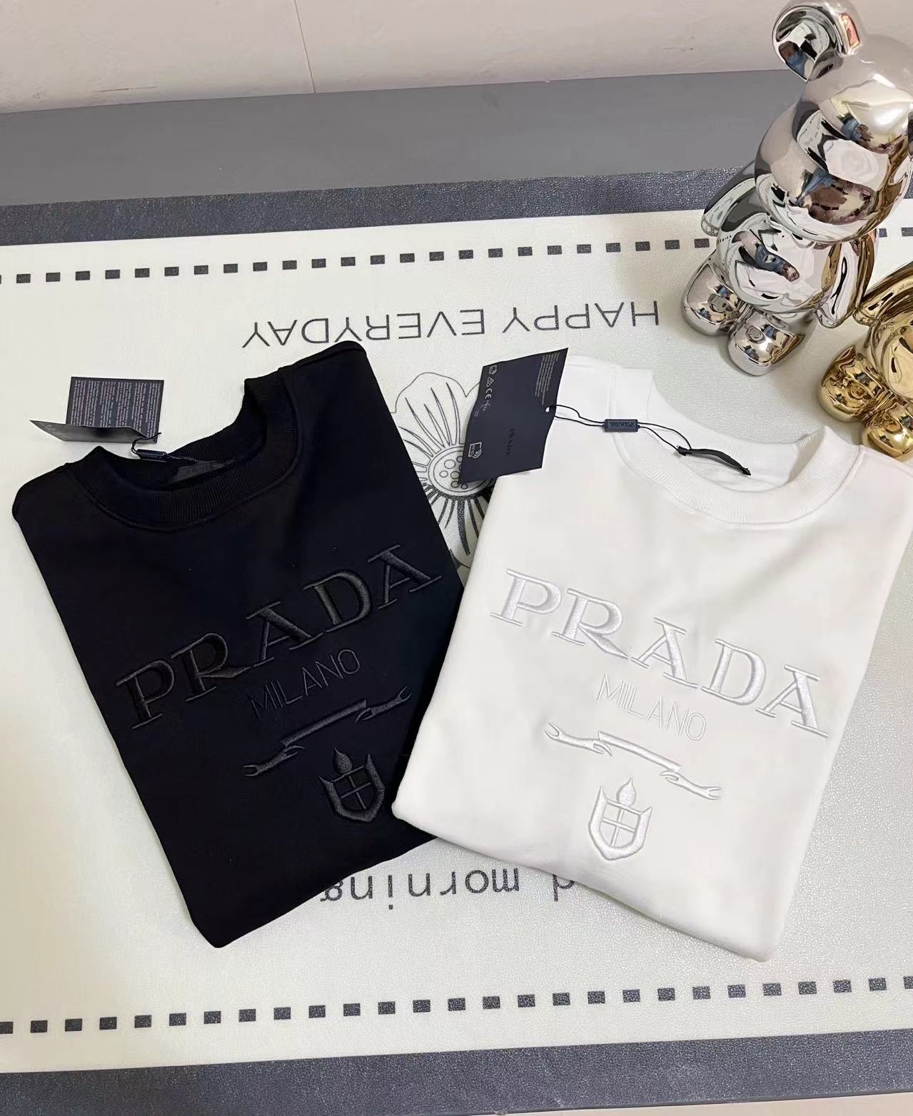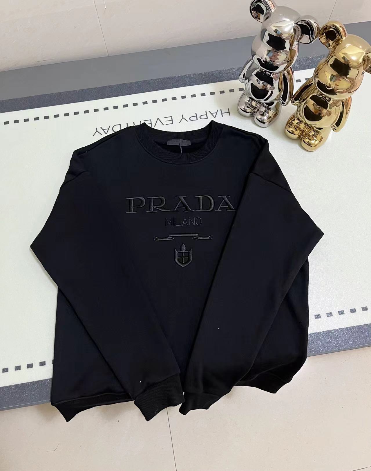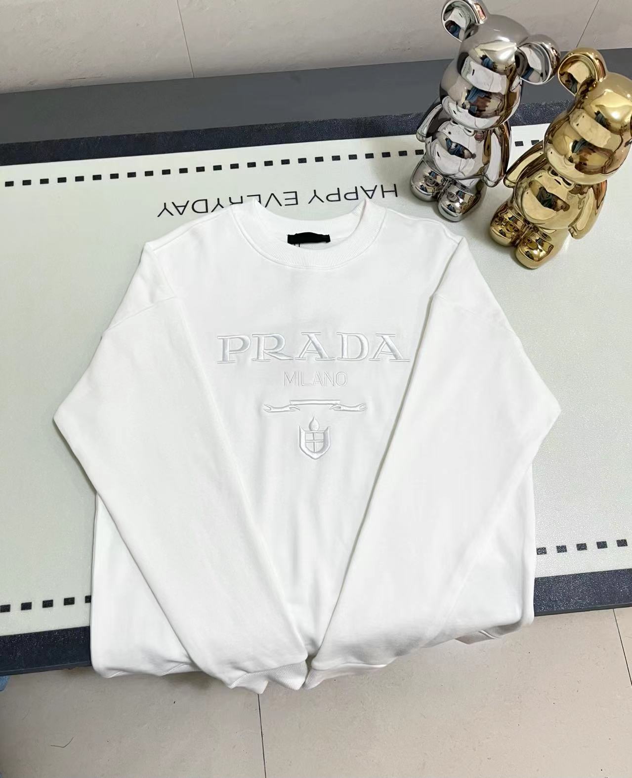 PRADA普拉达重工刺绣字母圆领卫衣 前面采用精密万针刺绣工艺 整体高端大气 采用450克原版面料 三标齐全 高版本可随意对比