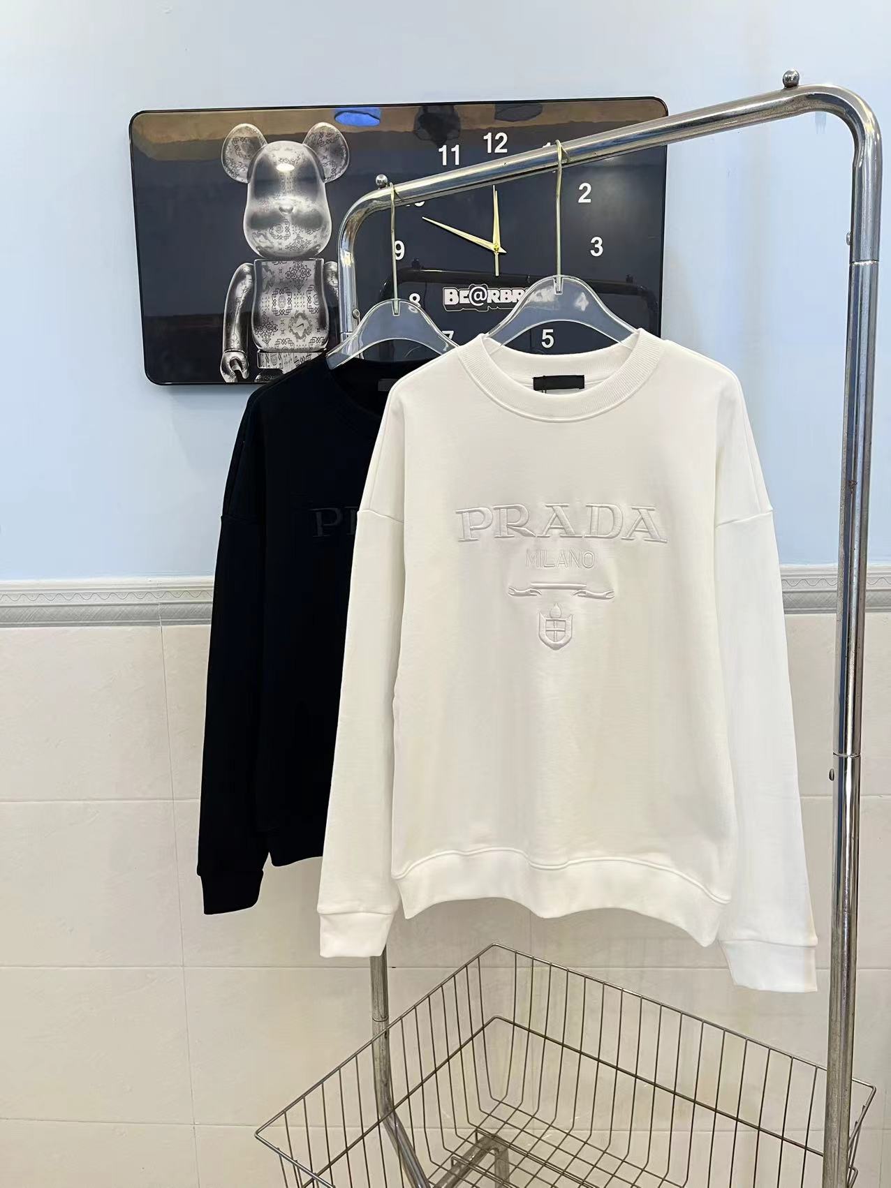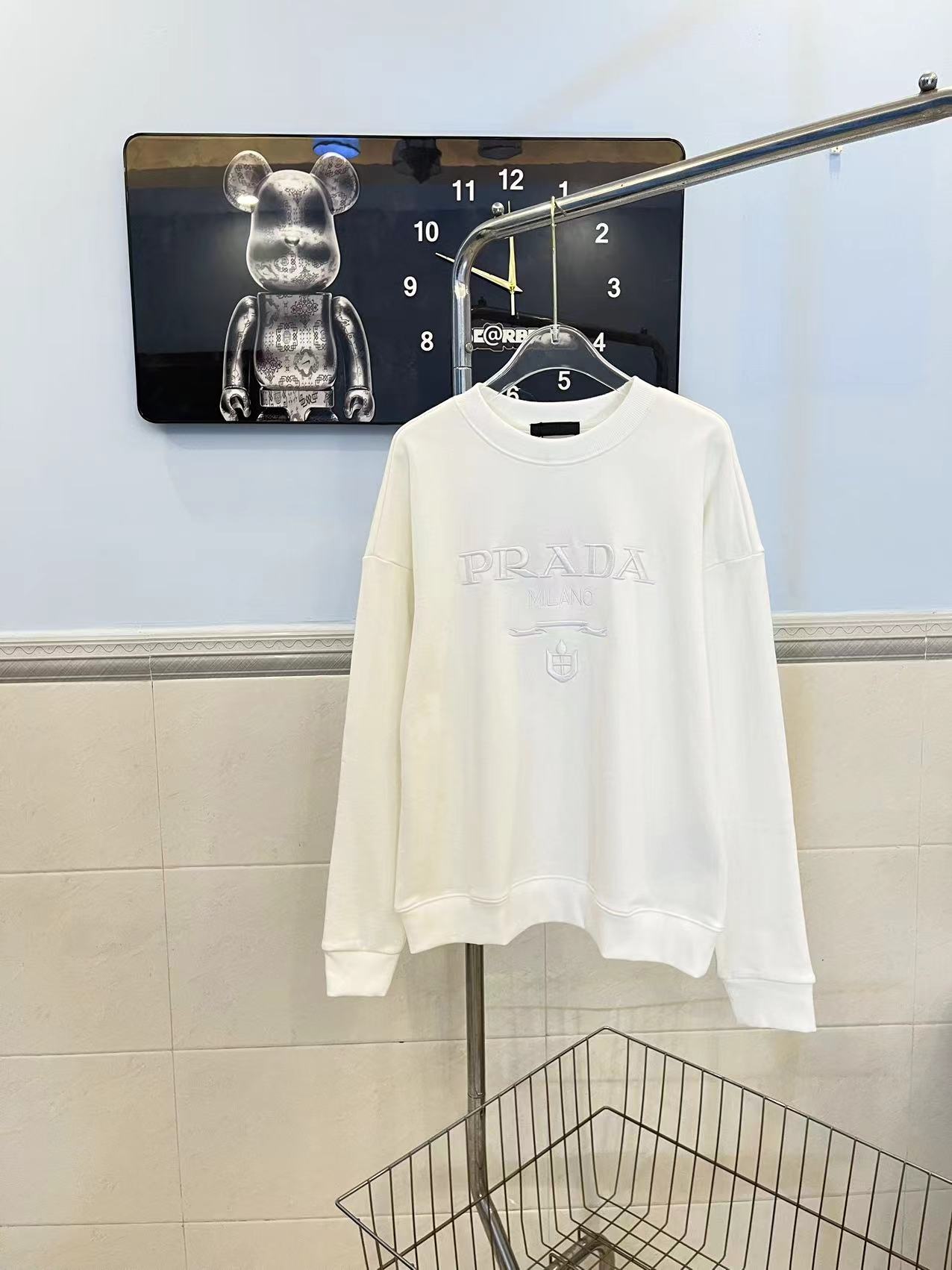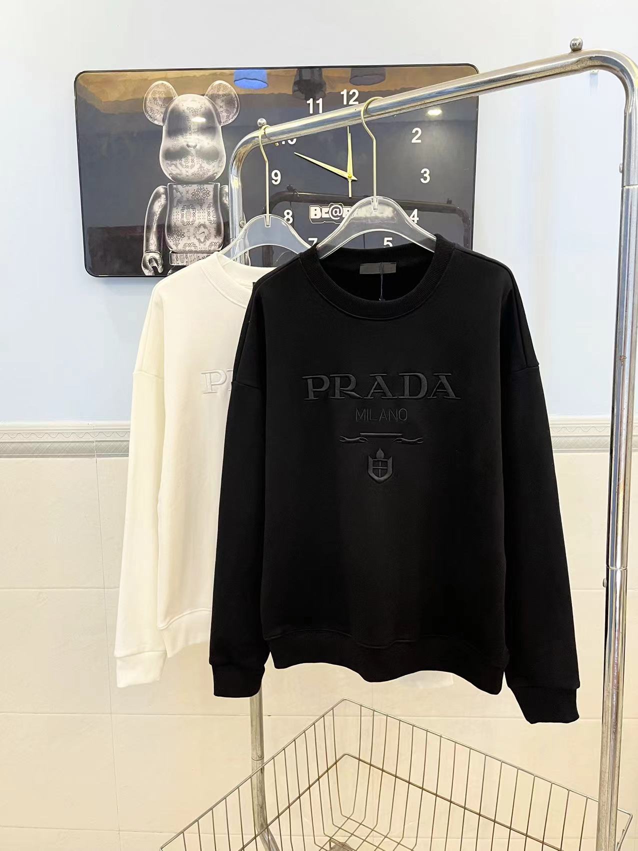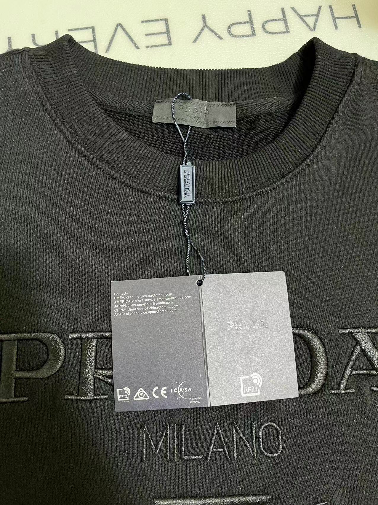 PRADA普拉达重工刺绣字母圆领卫衣 前面采用精密万针刺绣工艺 整体高端大气 采用450克原版面料 三标齐全 高版本可随意对比