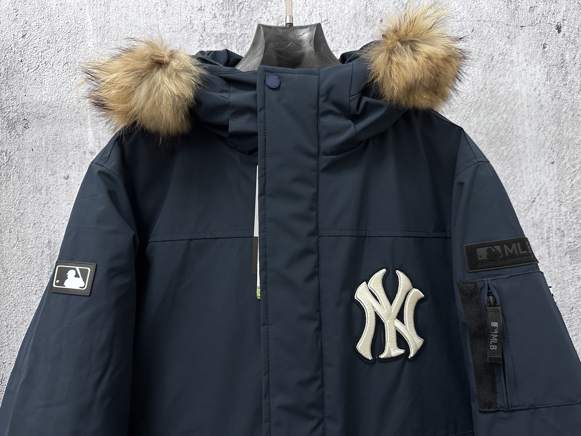 410157927 - 高品质 MLB 洋基队冬季新款情侣款大口袋工装毛领羽绒服 333112