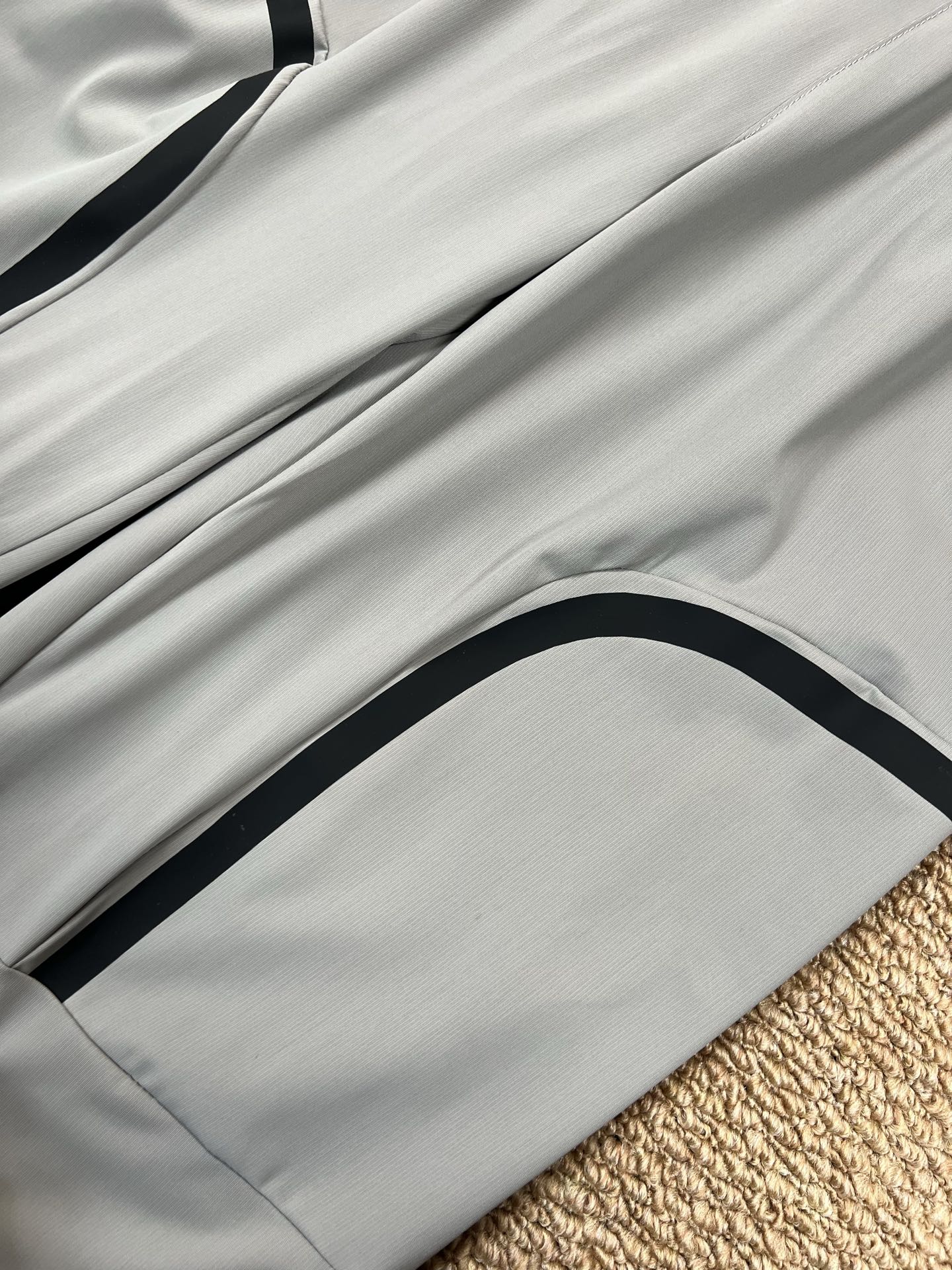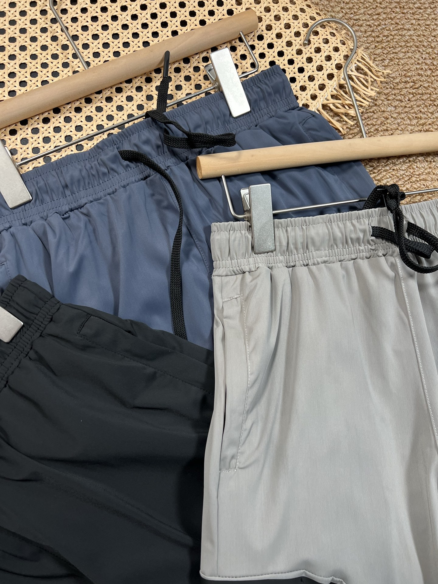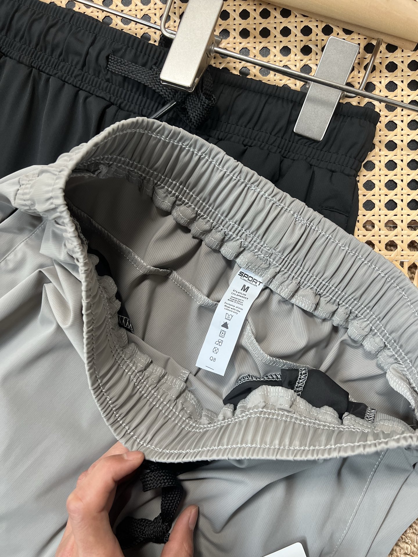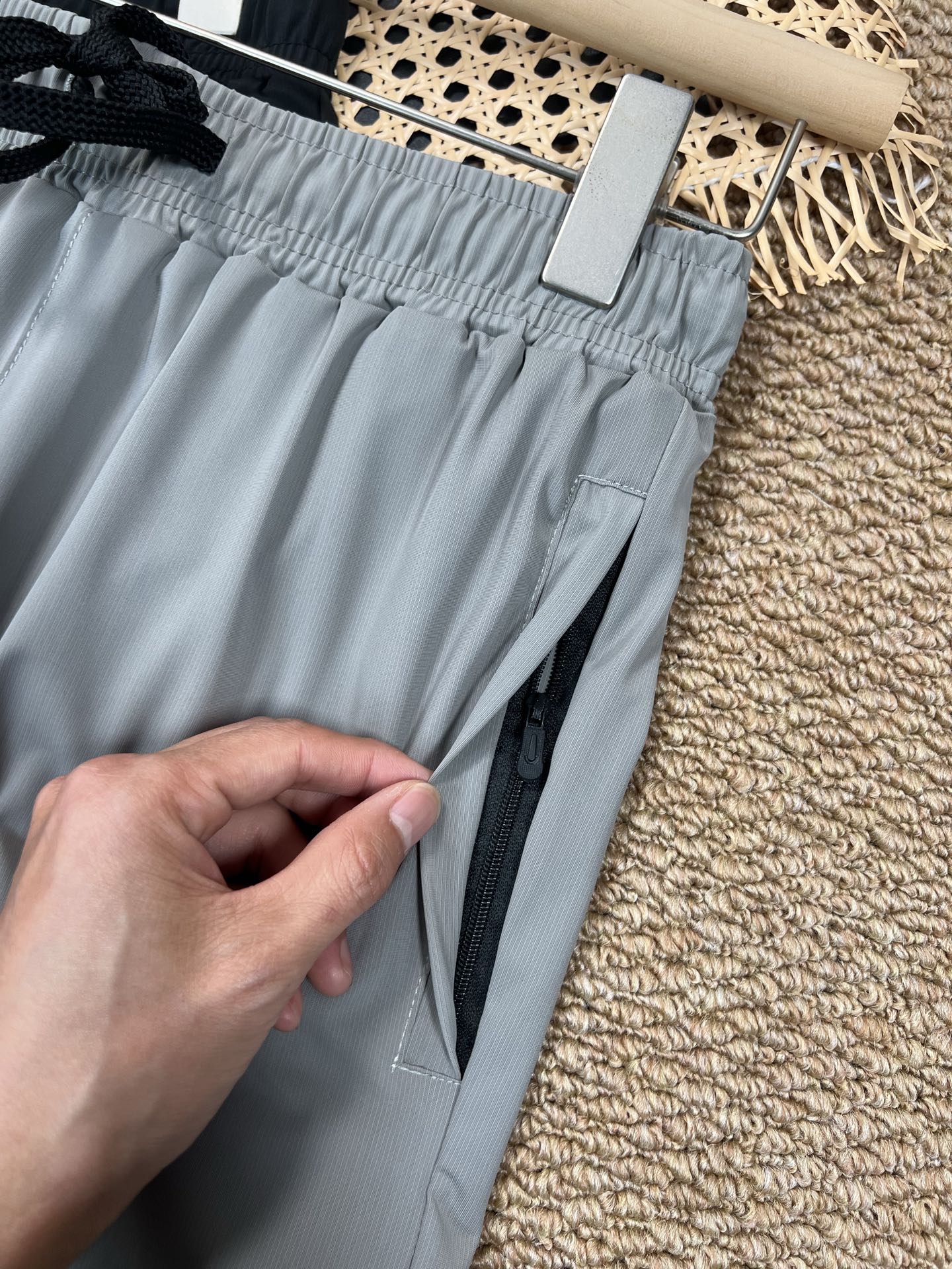面料 简称牛奶丝 上身冰爽 速干透气弹力十足 夏季不二之选 设计亮点 3D立体剪裁拼接束口裤型 运动有型两侧带拉链口袋 印花点缀 颜色 黑色 藏青色 灰绿 尺码 M 3XL
