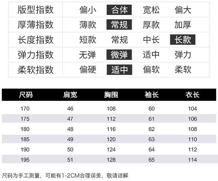 尺寸 M 170 4XL 195