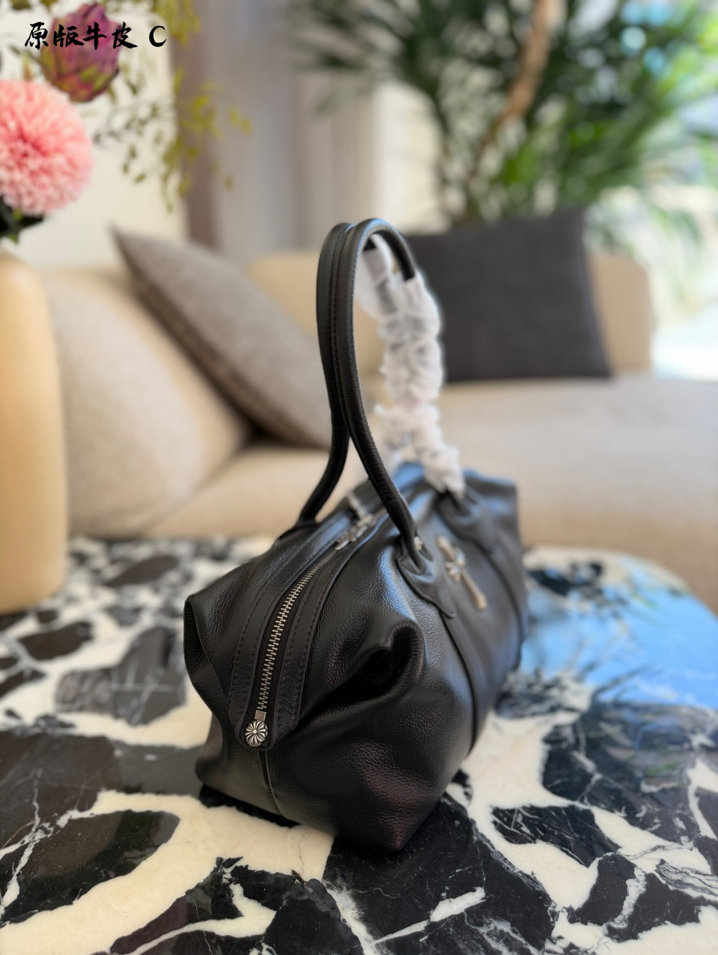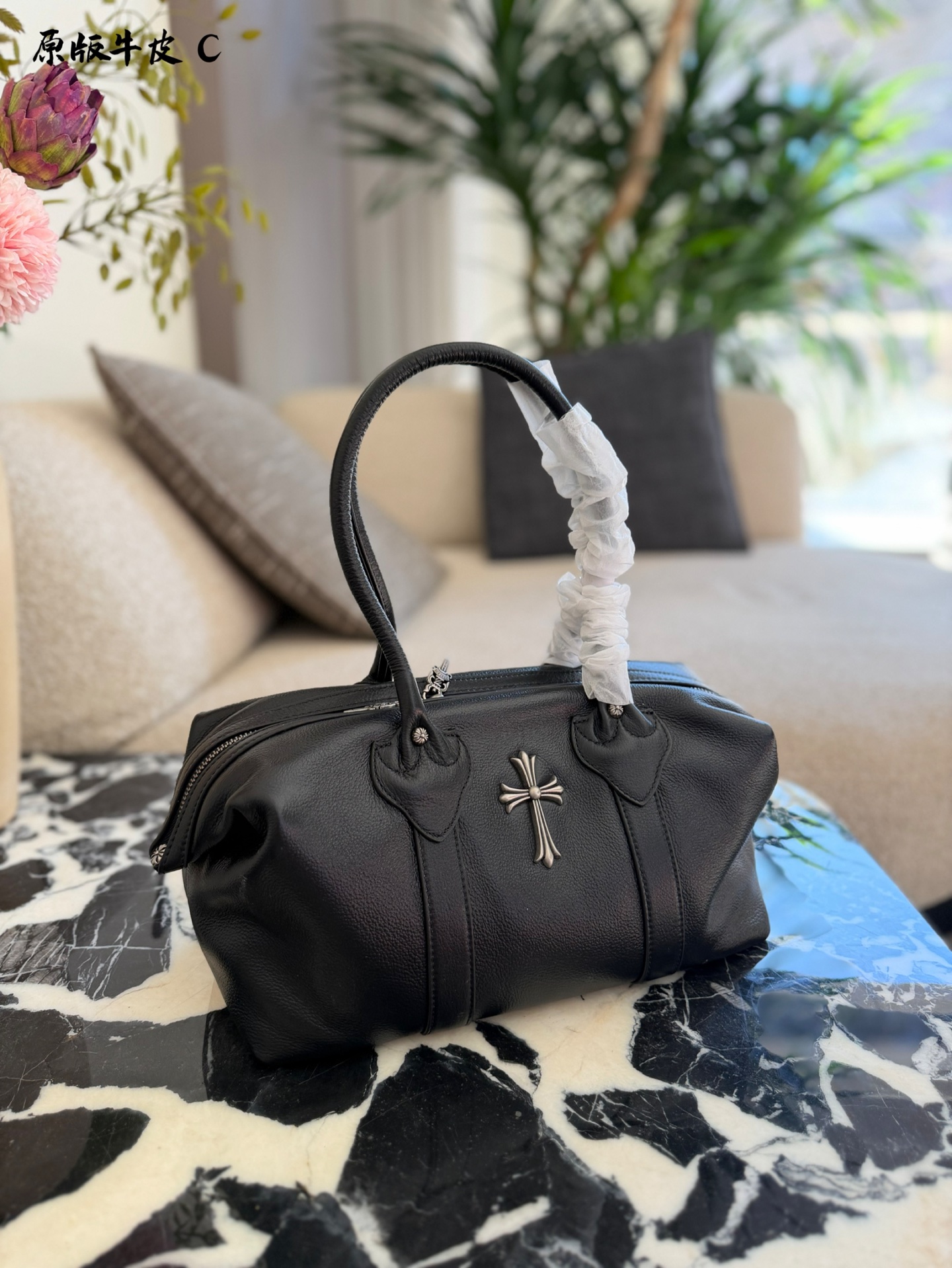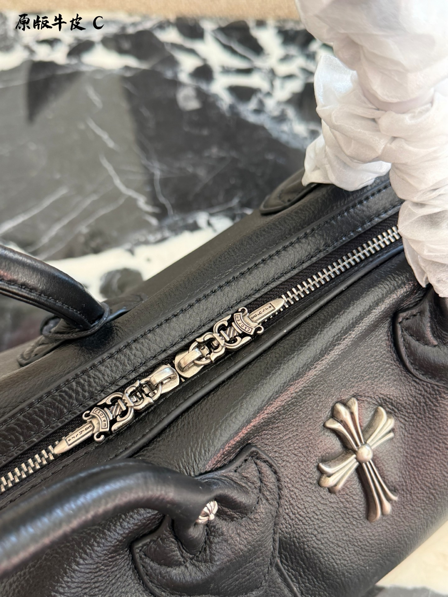 Chrome Hearts Monica饺子包 黑色荔枝纹牛皮 手感软糯耐磨 超适合日常通勤or休闲出街 正面十字架金属装饰 低调又有辨识度 波士顿包型 容量大 手机 充电宝 化妆品都能装 短途出行也OK 手提复古感满满 搭配卫衣or西装都超有型 实用又时髦 是秋冬百搭神器 35cm