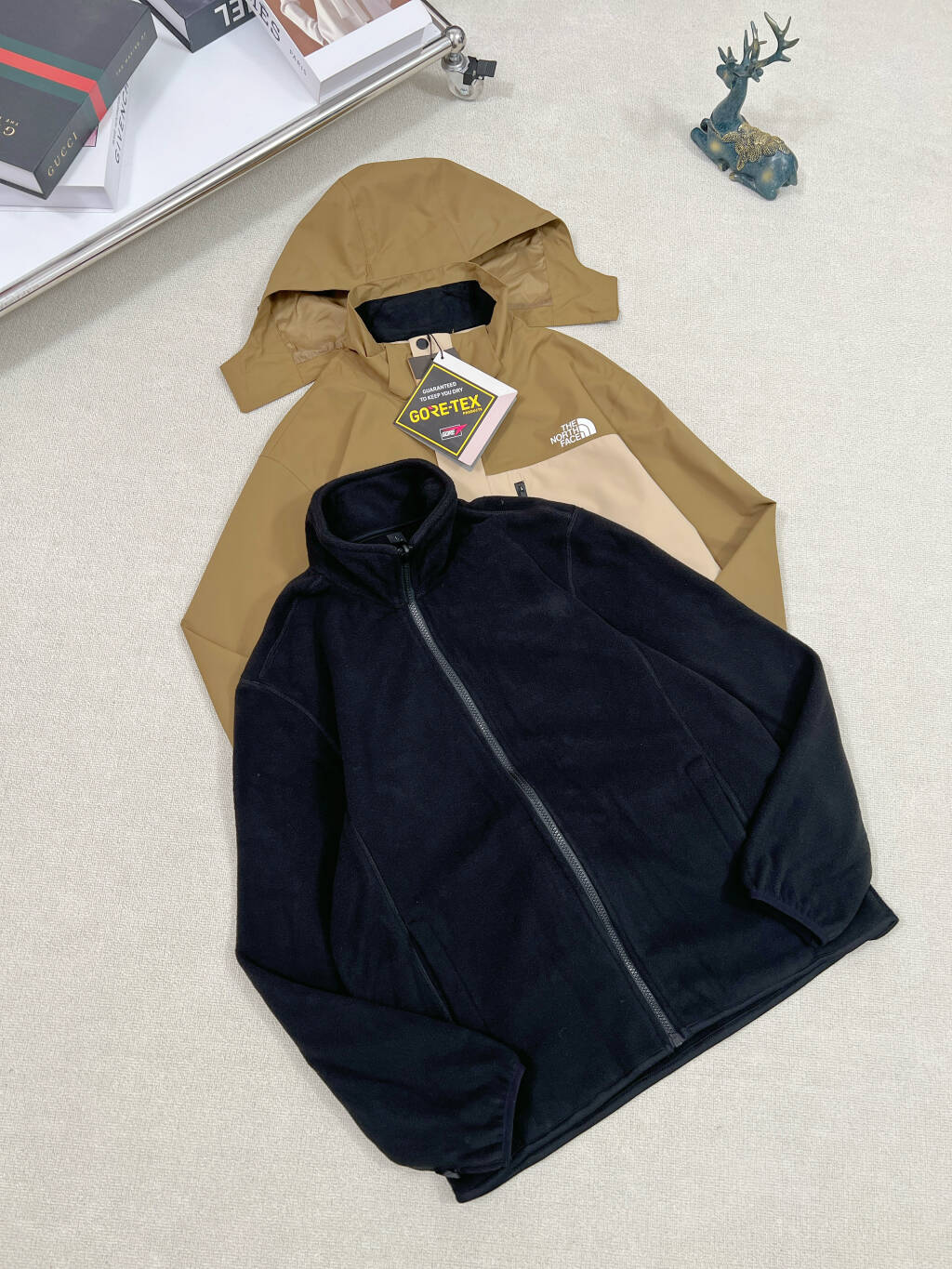 男女情侣款 TNF北面 1990三合一冲锋衣 日版经典款 防水防风冲锋衣 一件保暖摇粒绒内胆 冲锋衣的面料40d尼龙防撕裂面料 兼顾防水 耐磨 的同时 还十分透气清爽 防水指数1000mmH2O 透气指数6000g m 24Hr手感更佳舒 可满足各种运动的需求 内胆选用客供环保的POLARTEC抓绒面料 婴儿级别的安全可靠 轻量保暖 柔软舒适 防静电 不起球 冲锋衣外壳帽子方面选用可兼容头盔的带压合帽边和可调节绳扣 风雨天气下收紧风帽可为头部提供周全防护 主拉链以按扣 拉链闭合的双层挡风片 可有效避免空气流通 增强穿着的保暖性 内置抓绒层拉链 与抓绒内胆可搭配穿着 保暖性能更加出众 细节都拿捏到位无可挑剔 数量不多 即刻开秒 一件抵三件 冲锋衣和内丹均可以单独穿着也可以组合穿搭