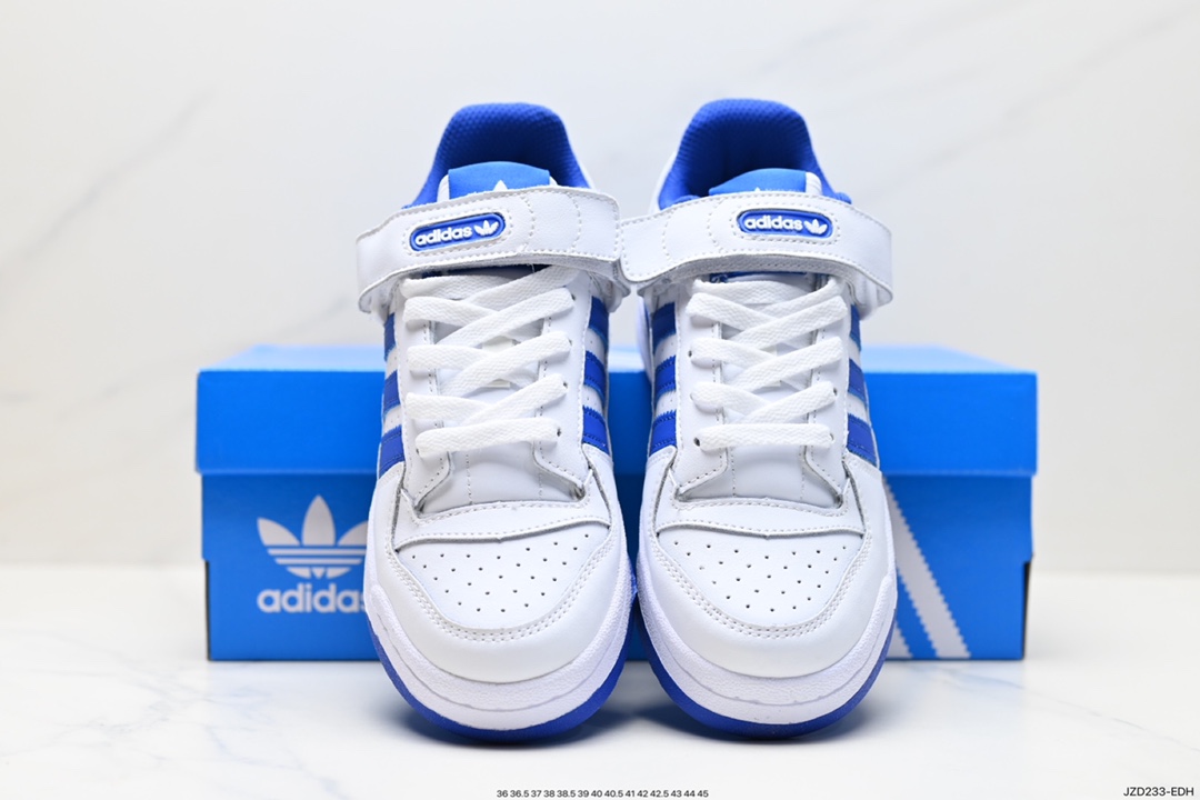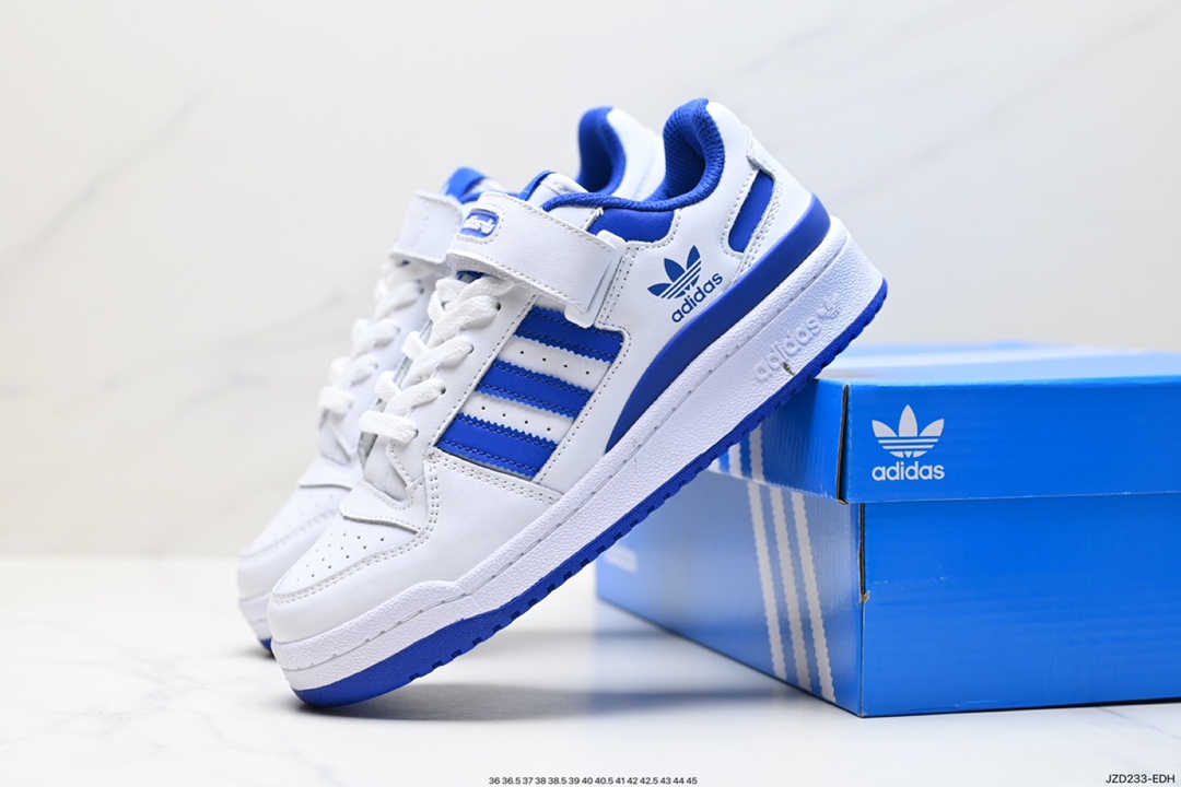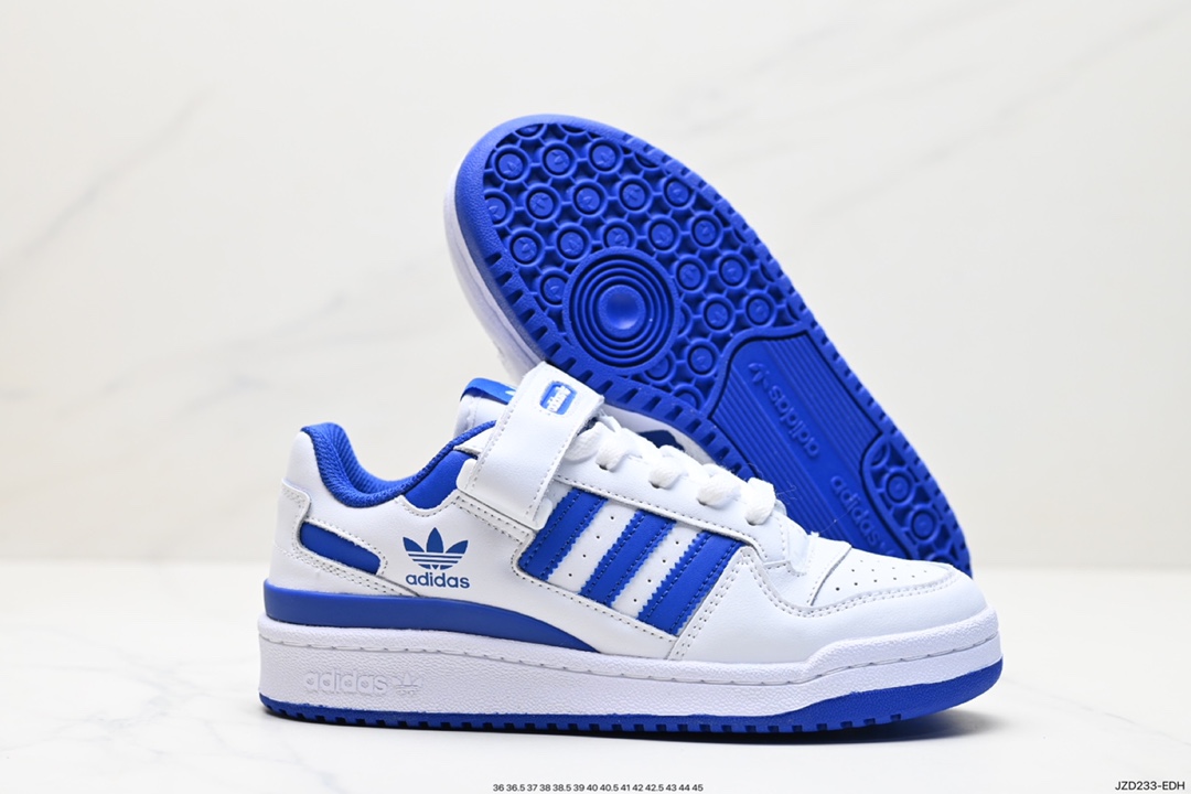 真标阿迪达斯 Adidas Forum 84 Low OG Bright Blue 白蓝 低帮百搭潮流休闲运动板鞋 以复古篮球鞋的外形为基础 采用皮革拼接 简约百搭 更加贴合舒适 中底内侧网格造型起到点睛之笔 外底橡胶 更显复古 官方货号 FZ6242