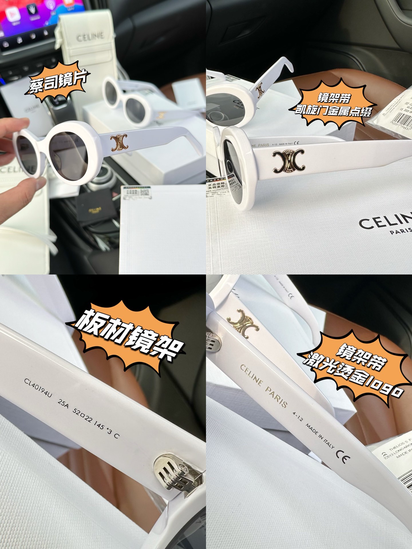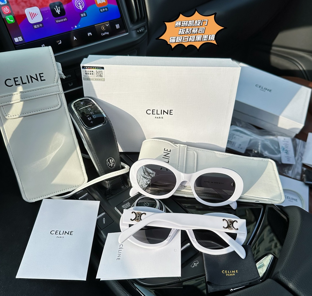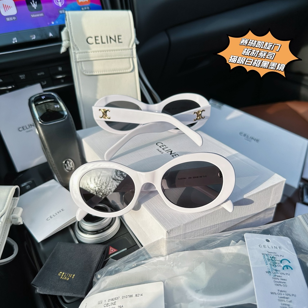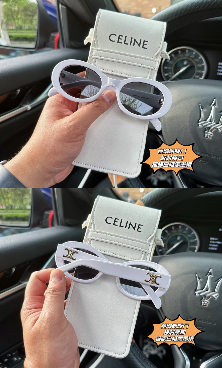 为了一个包包而入一副墨镜的传说 眼 前时尚 独领风骚 板材蔡司墨镜糕端货 阚清子同款种草 Ce Lin e CL40194 Triomphe 01噻琳凯旋门椭圆猫眼白镜框太阳眼镜板材蔡司墨镜 线上倌网3800同步在售 咱家免裞直邮毒家渠D就一批几十套 板材镜架 蔡司镜片 区别市面任意D端垃圾货 别再乱买了 兄弟姐妹萌 墨镜有这幅就够了 椭圆猫眼造型拍照自带瘦脸效果的神仙墨镜 值得注意的是掌柜家倌方佺套包装配件 附赠噻琳的小挎包 平时完全可以当做小斜挎包出街 可放手机 钥匙口红 超级实用 买墨镜送包包啦
