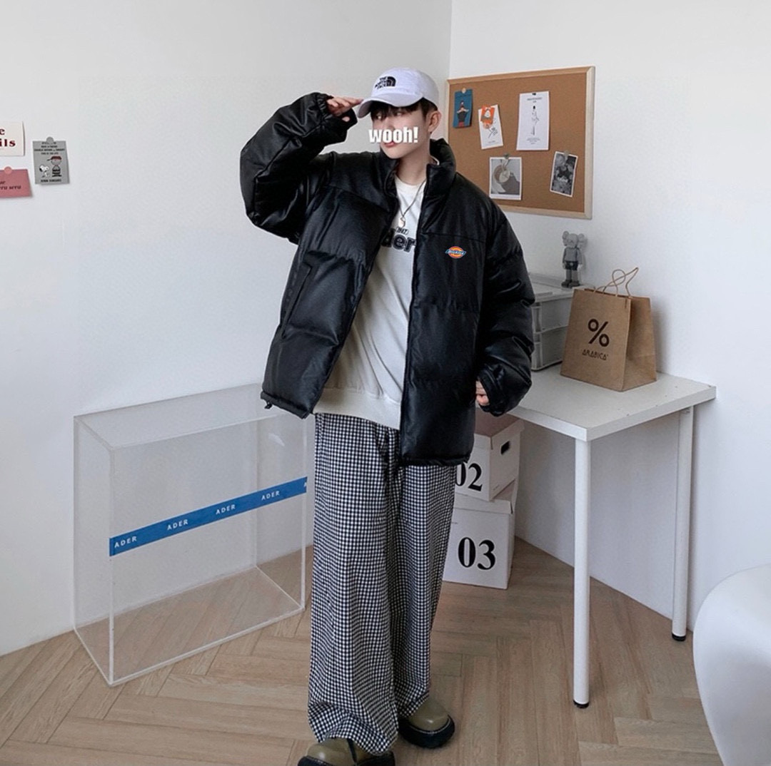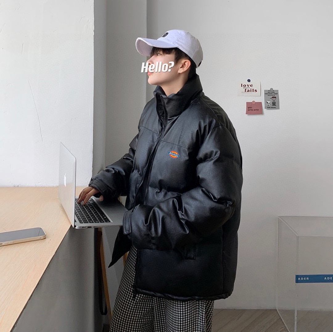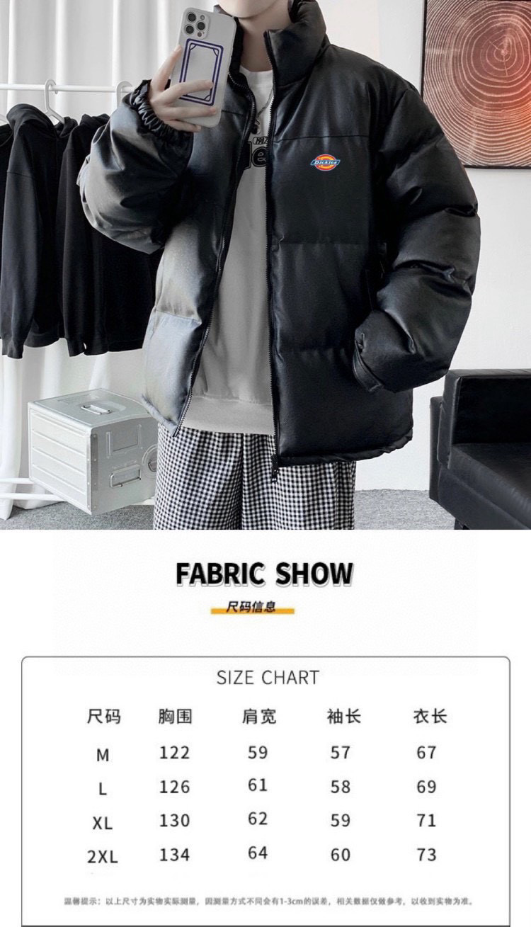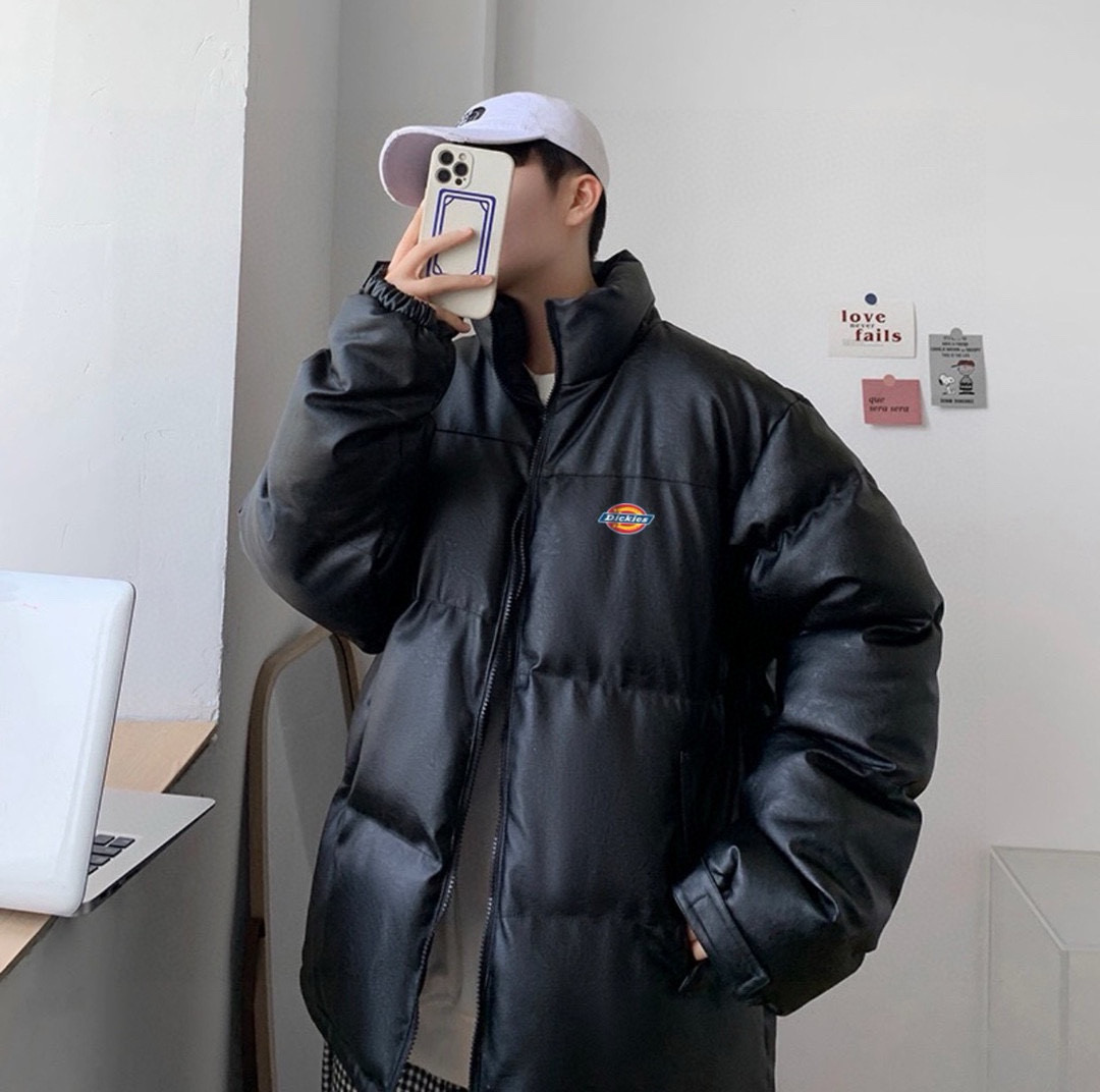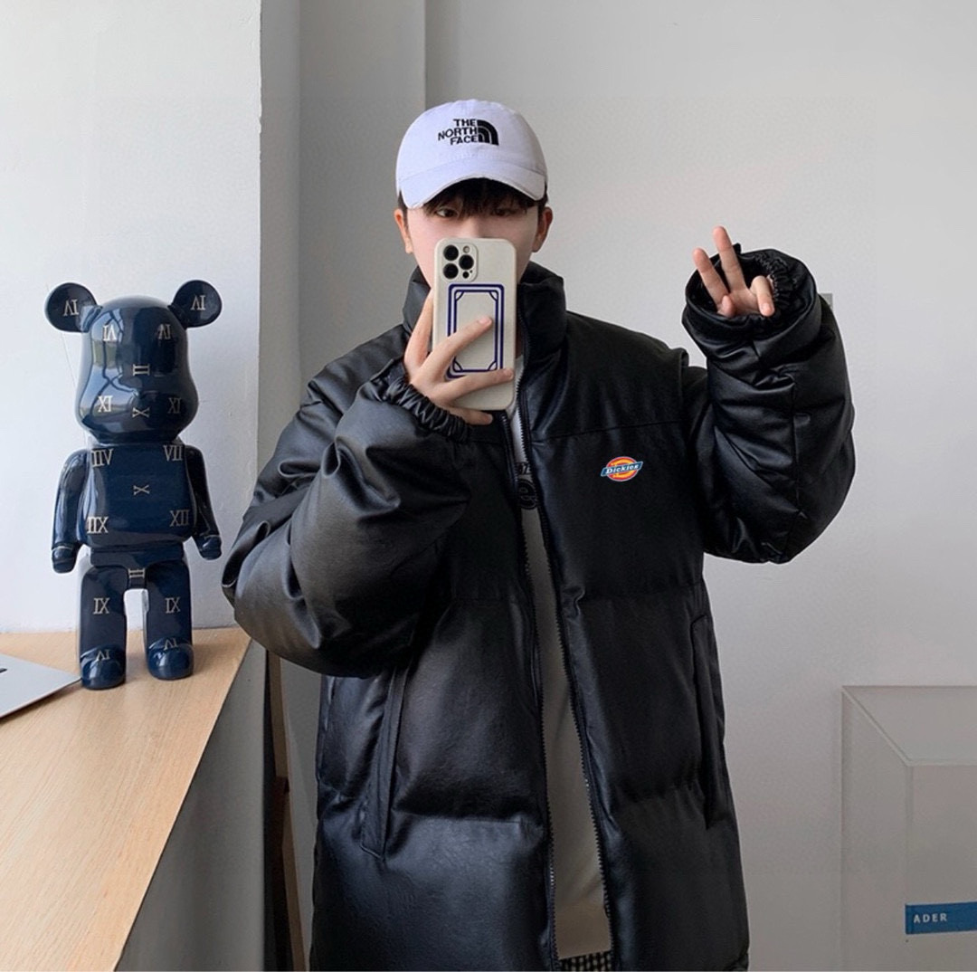 威海贸易货1 1开模订制 细节各方面拉满 原包装原吊牌尺码m xxl dickies迪克斯 海外版限定爆款皮衣羽绒棉服外套 男女同款 ins小红书抖音 爆款皮衣外套 内里人工手塞高克重羽绒棉填充 立领式领口 保持干练更能抵御风寒 胸前迪克斯经典马蹄印logo 潮流感满满 oversize版型风格随意搭配 休闲百搭 男生女生情侣都可以穿