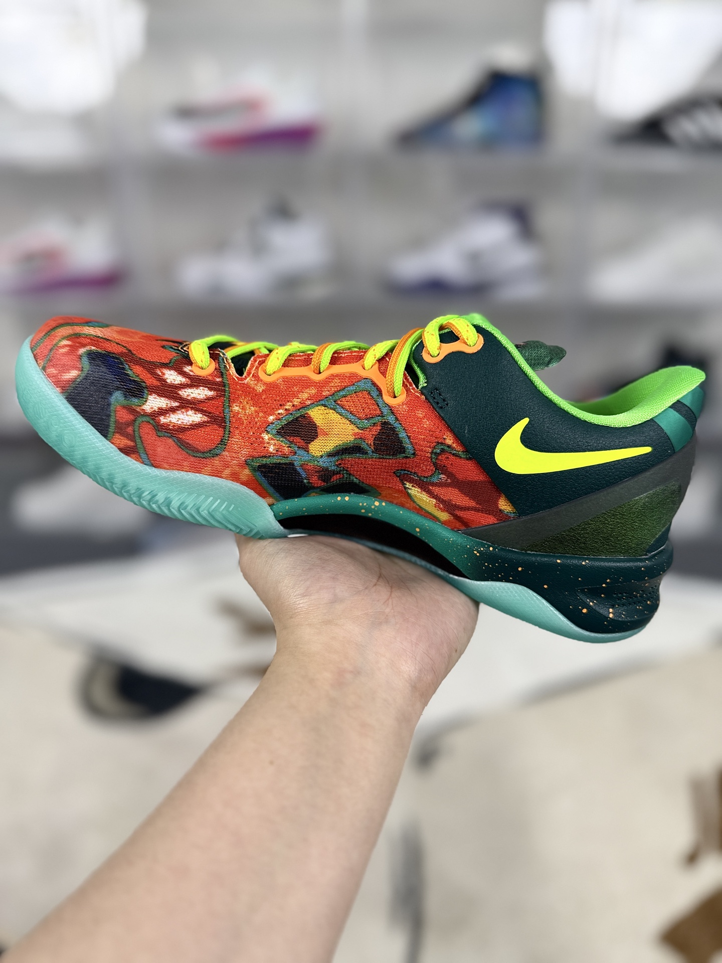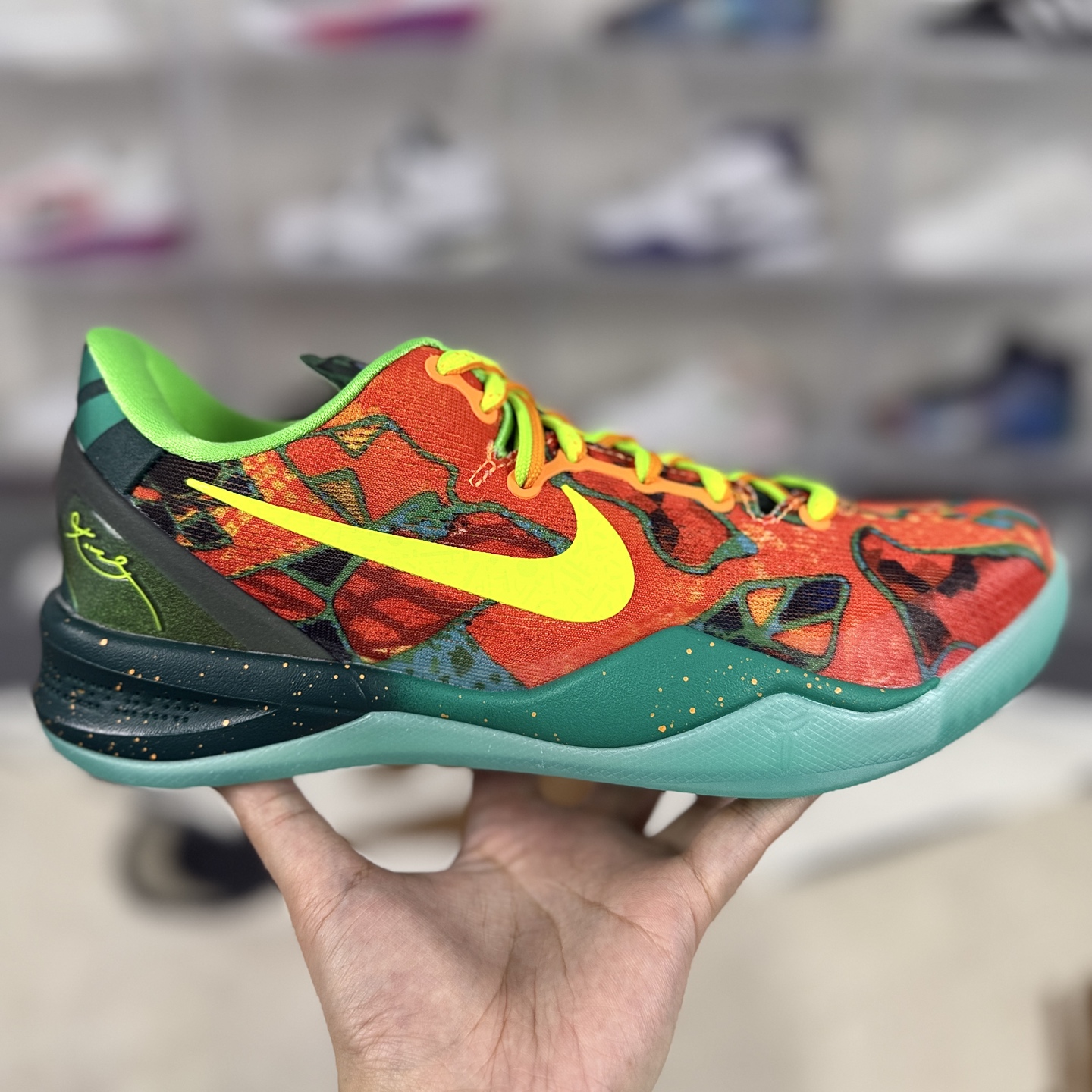 Nike Zoom Kobe 8由耐克运动鞋创意总监Eric Avar带领的设计团队与科比本人紧密合作而成 融入了科比在球场上的运动特点和习惯 该鞋款旨在打造一款低帮 轻质且能适应快速打法的篮球鞋 同时保证足够的支撑和保护性能 科比本人对于这双球鞋的期望是如同双脚的一部分 毫无负赘感 帮助他在比赛中如光速般移动 采用革新编织网眼材料 为双脚提供了卓越的贴合感 极致的轻盈以及360度全方位透气性 这种材料的使用使得鞋面在紧密包裹足部的同时 也提供了足够的柔韧性和支撑力 全掌Lunarlon中底系统结合了轻盈感 缓震性 低帮构造与稳定感四大优势 为球员提供出色的缓震性能和能量回馈 还搭载了Zoom Air气垫技术 进一步提升了鞋子的快速响应性能和场地感 采用XDR橡胶材料制成 耐磨且抓地力超群 外底刻有经典人字形骨纹与蛇鳞图腾 既美观又实用 确保了球员在比赛中的稳定性和灵活性