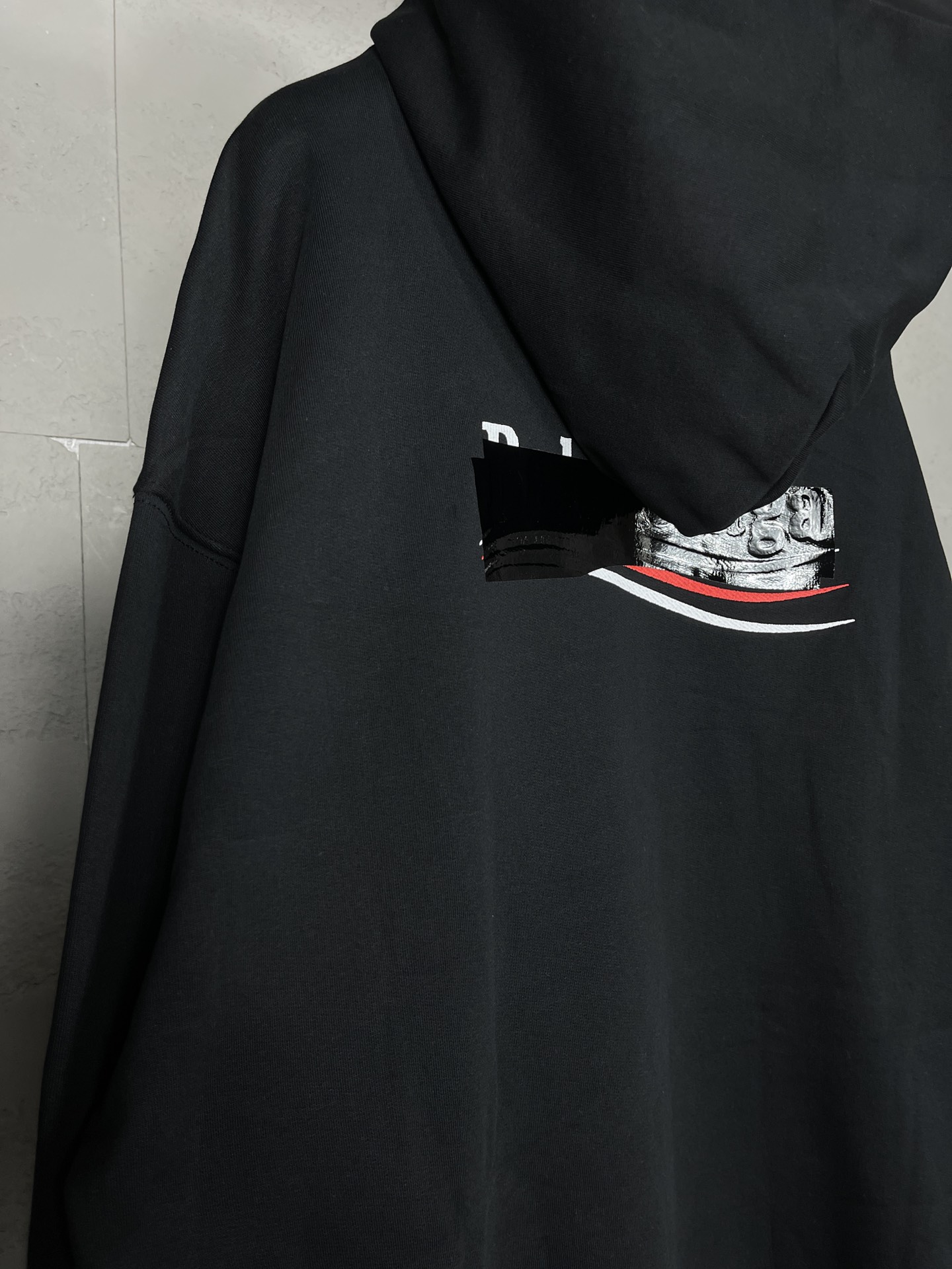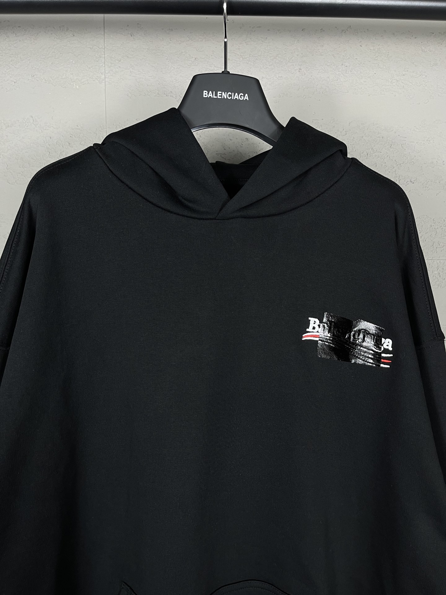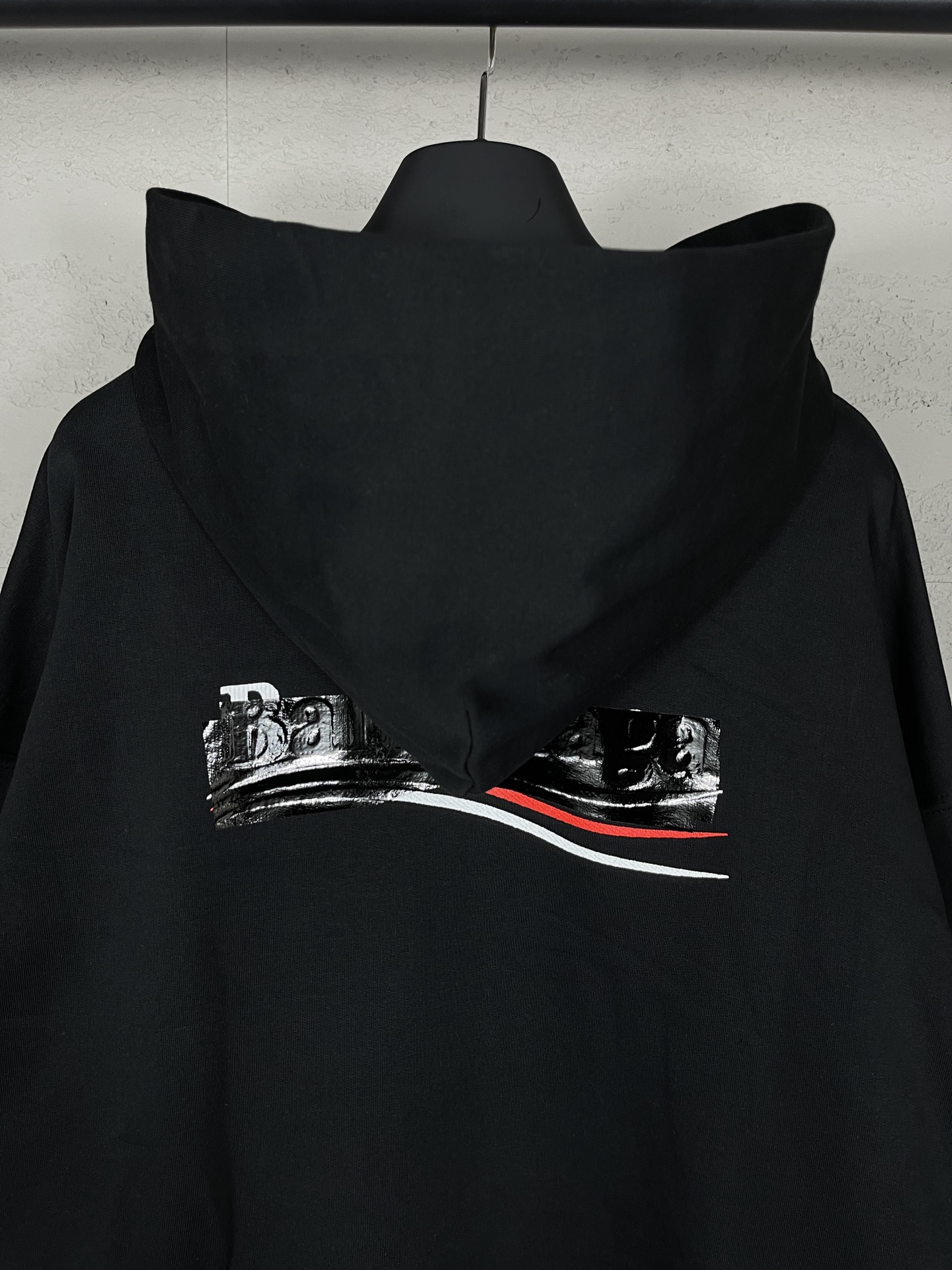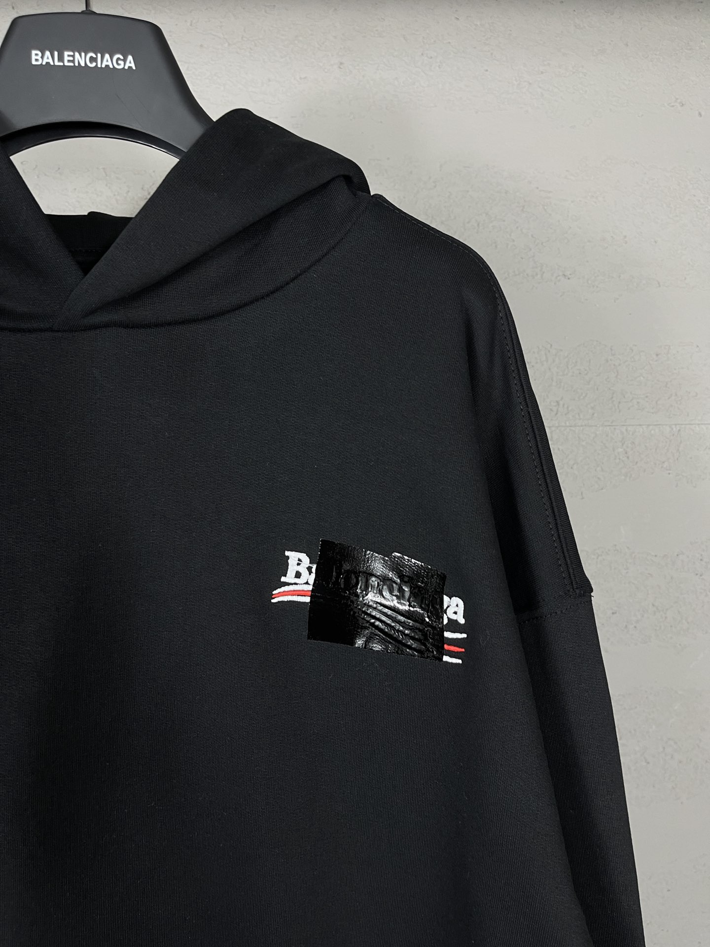 实拍图 顶级版本 官网品质 BALENCI GA 巴黎 经典款 可乐刺绣黑胶带连帽卫衣