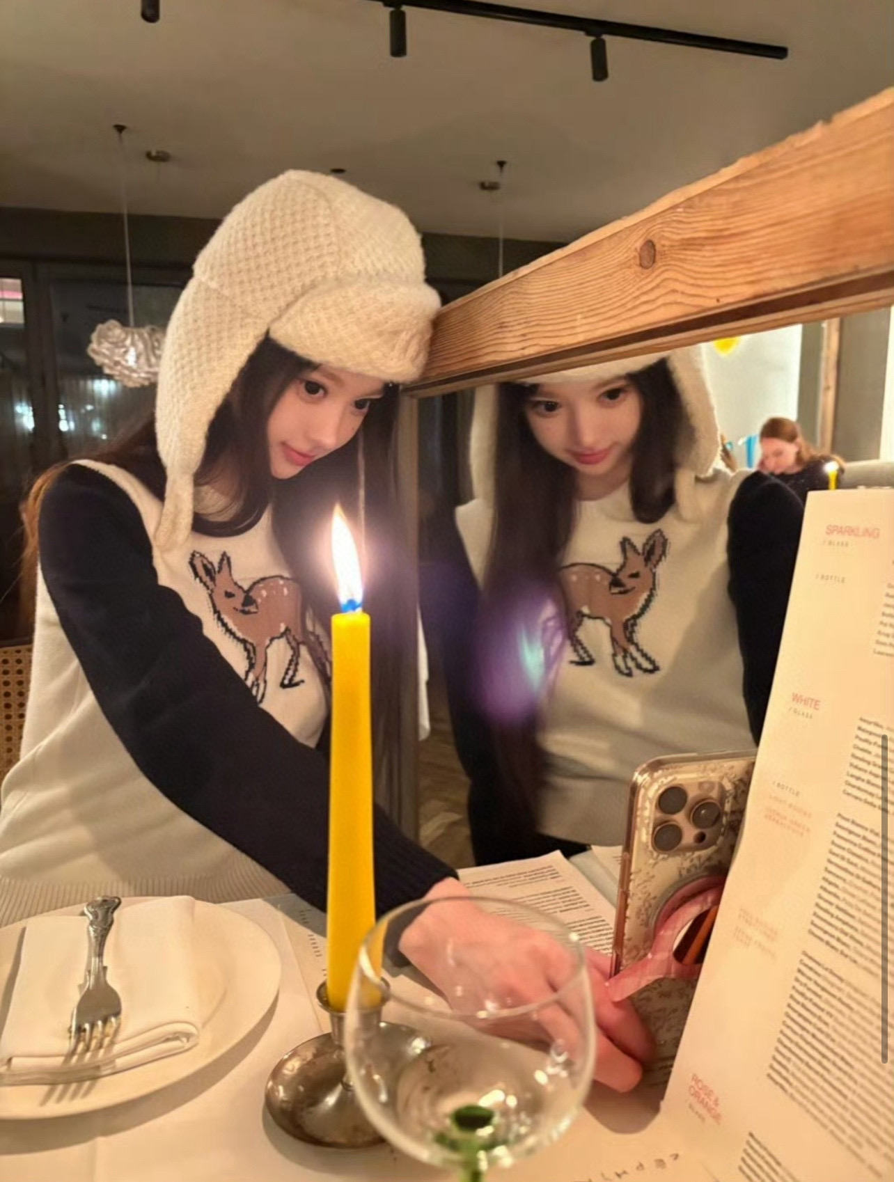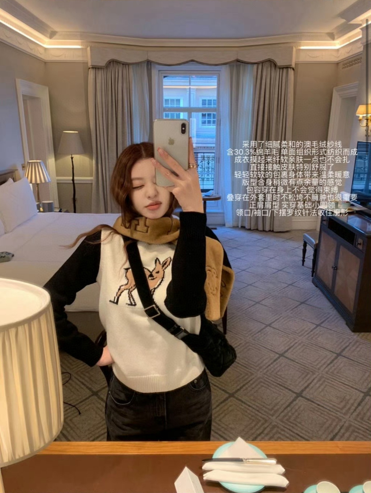 Chanel香奈儿小香圣诞小鹿提花北极绒拼色圆领长袖针织毛衣