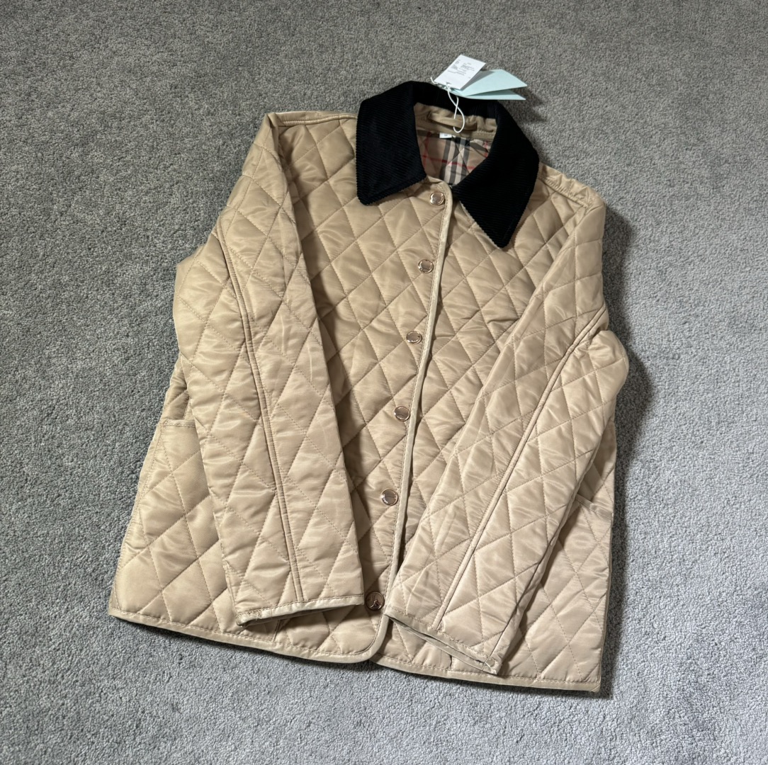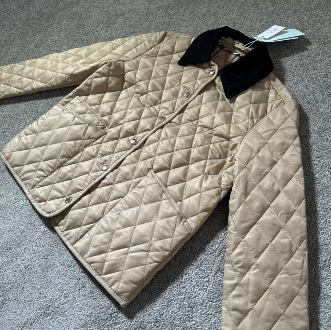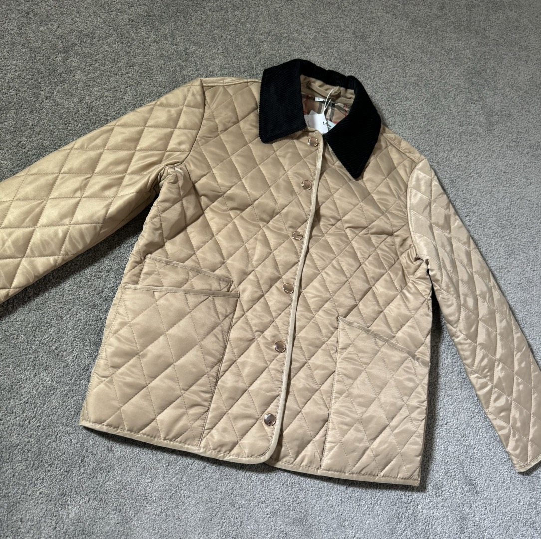 顶级版本 Burberry巴宝莉2024SS 黄金战袍战马标 经典款菱形格纹长袖棉服 男女同款 XS到L
