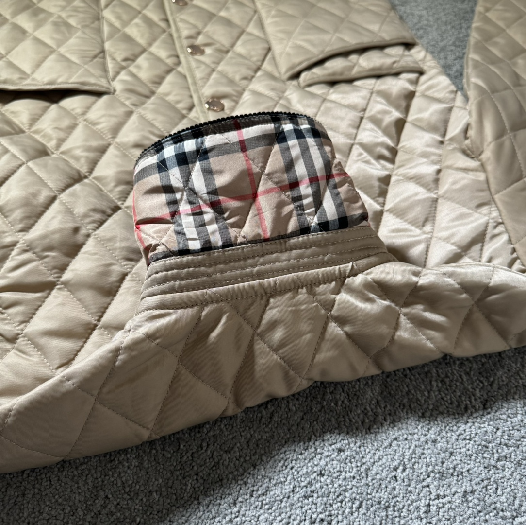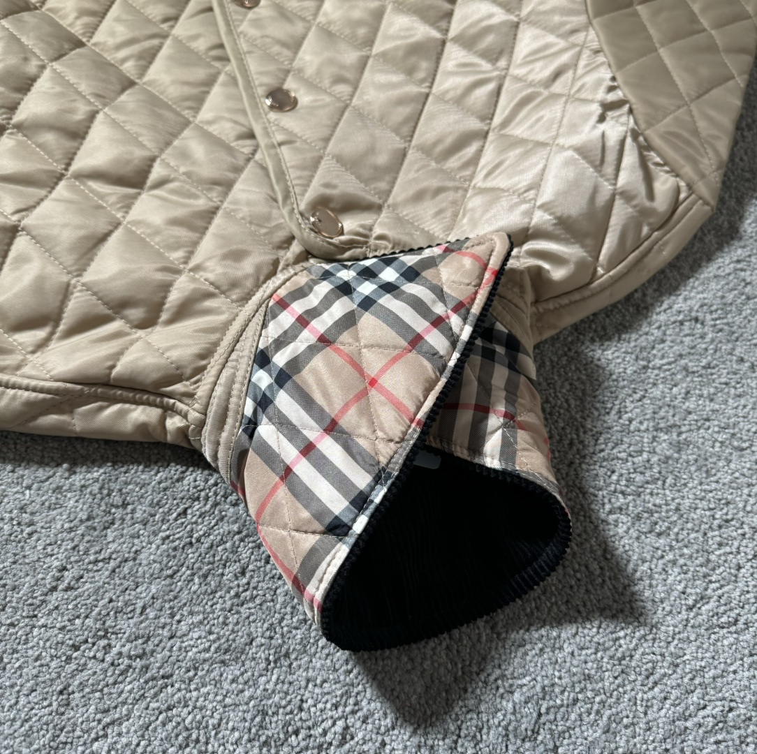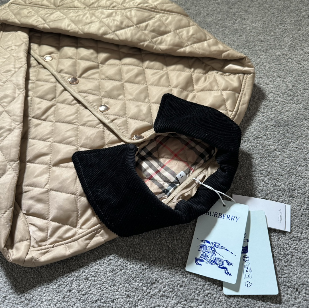 顶级版本 Burberry巴宝莉2024SS 黄金战袍战马标 经典款菱形格纹长袖棉服 男女同款 XS到L