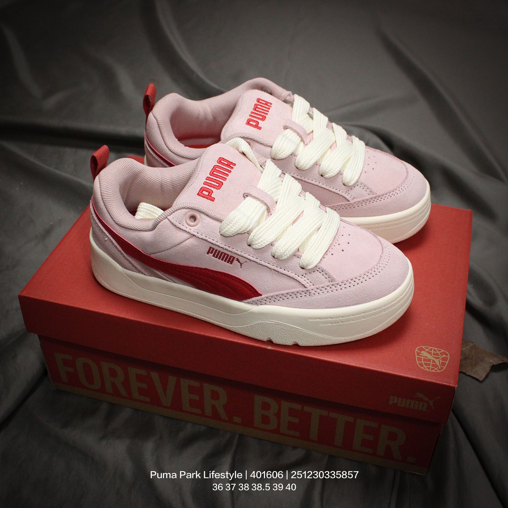 PUMA 彪马 原楦原纸版开发版型 采用硬质荔枝纹牛剖革组合翻毛皮饰片鞋面材质 外置耐磨橡胶大底蕾哈娜同系面包鞋太好看了 彪马Puma Park Lifestyle SD Putty Sneaker 公园生活方式系列低帮复古面包风百搭休闲运动板鞋 401606