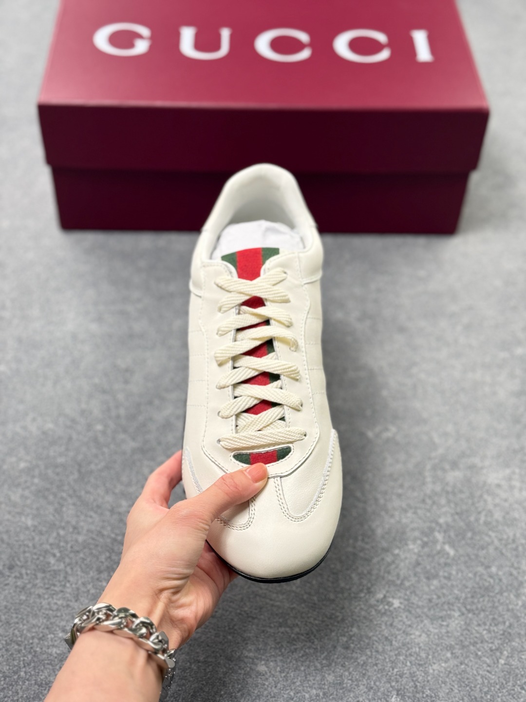 GUCCI古驰 Shift 皮革 圆头系带 低帮 生活休闲鞋 1cm