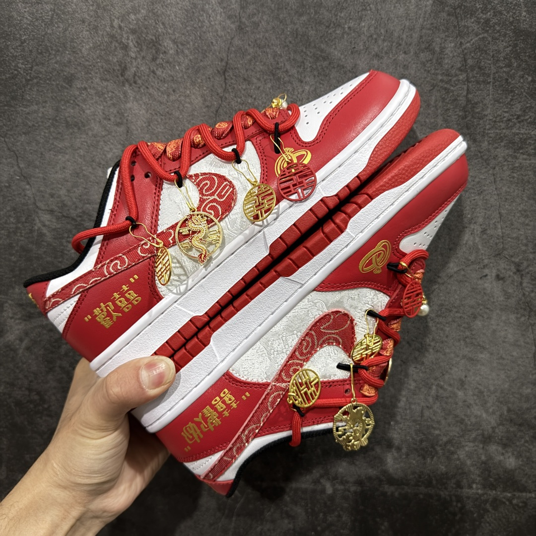 顶级礼盒版 Nk Dunk Low 囍欢你 大红刺绣 龙凤呈祥 喜挂饰 SB绑带低帮休闲婚鞋 FD9762 061