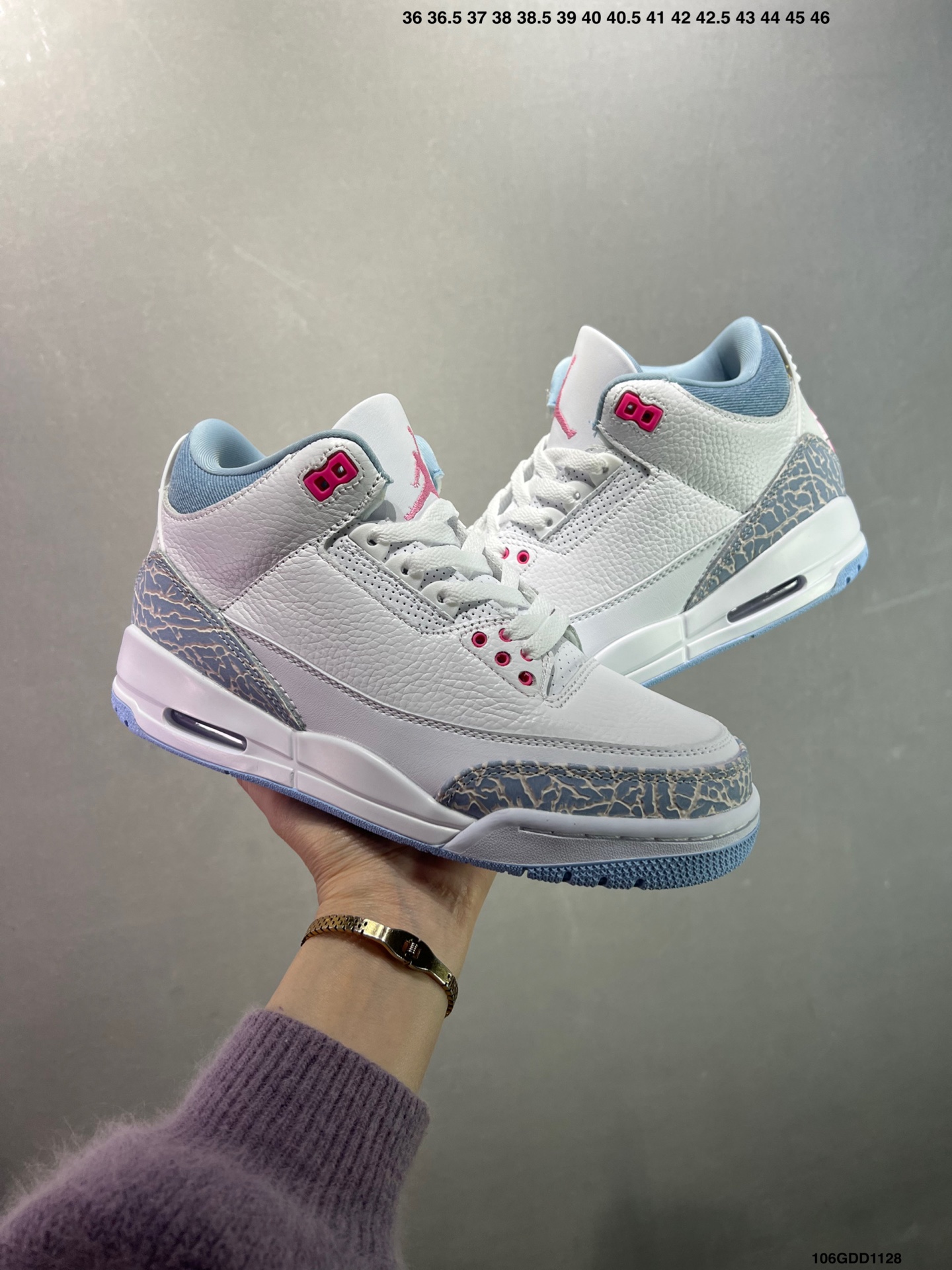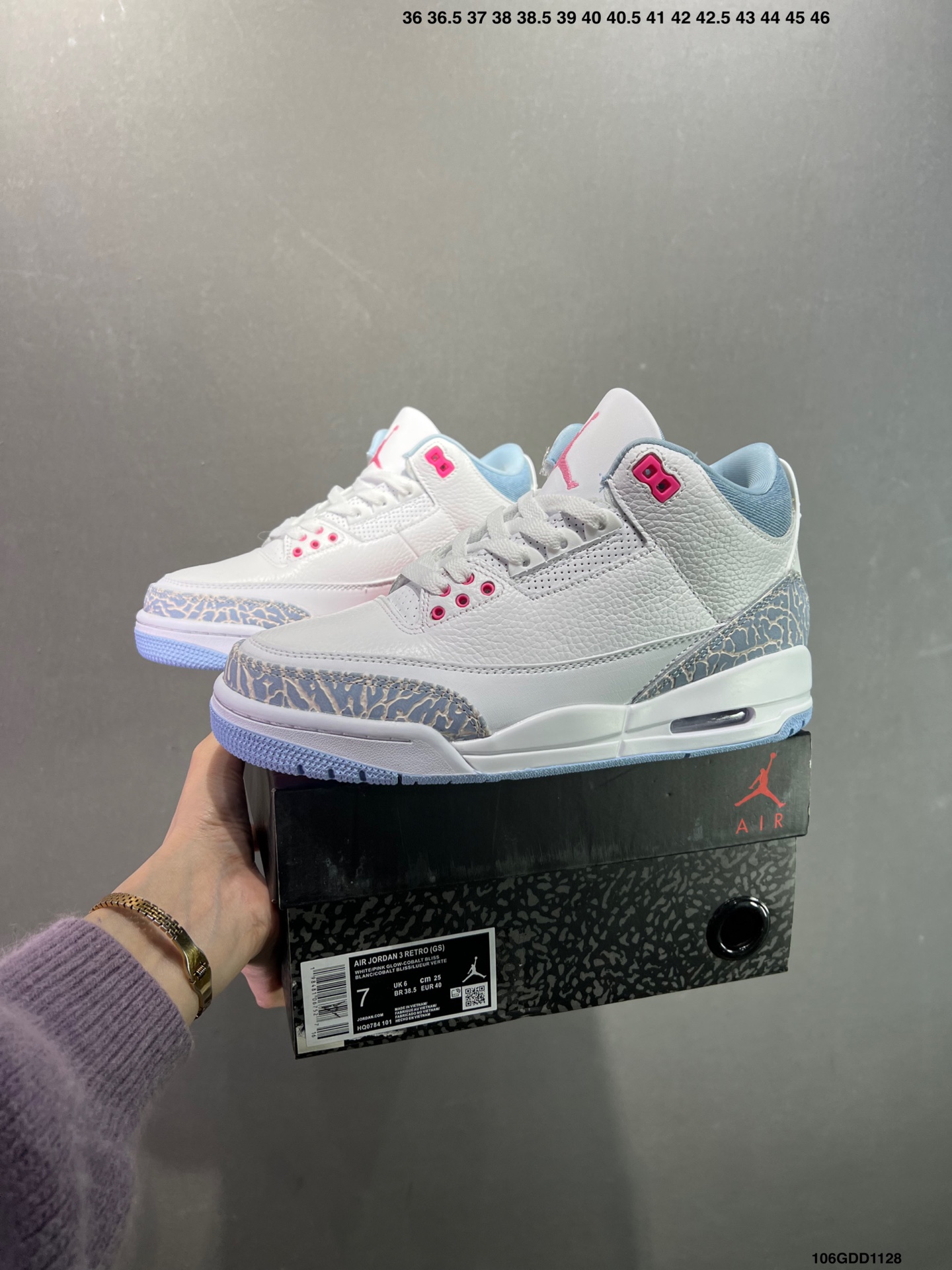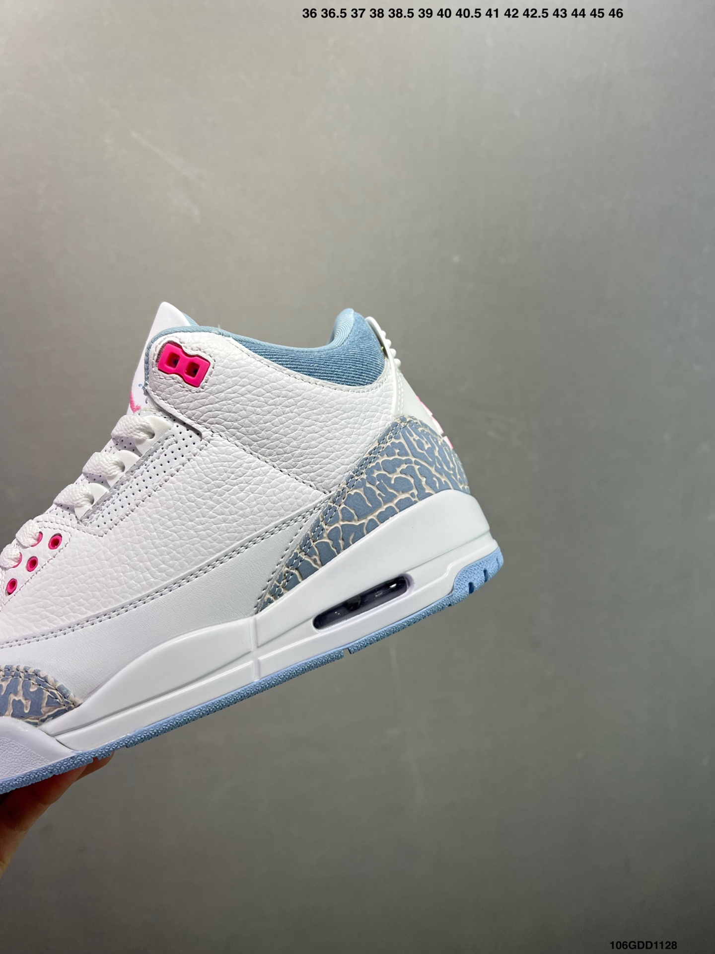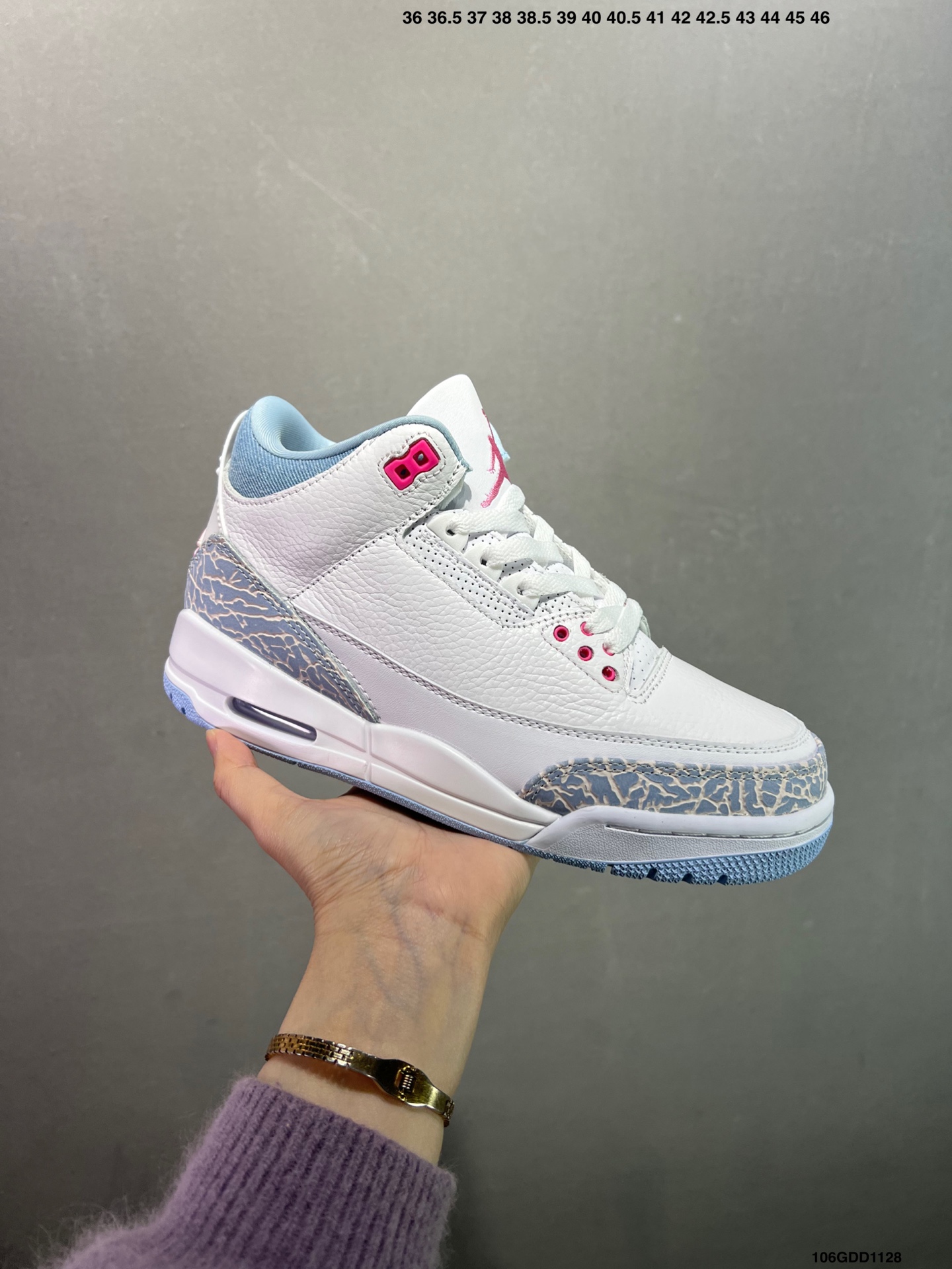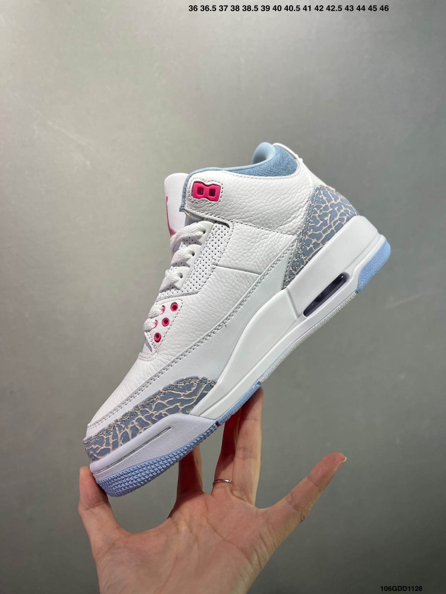 公司级Air Jordan 3 Cobalt Bliss AJ3 乔3粉彩荧光 HQ0784 101 鞋面以纯净的白色皮革为基底 营造出清爽干净的视觉基调 清新亮眼的 钴宝蓝 深浅交织的蓝色纹路 为鞋身披上独特的艺术外衣 既保留了 AJ3 标志性元素的韵味 又注入了全新的时尚基因 柔软的触感带来舒适穿着体验的同时 复古牛仔风与现代潮流感碰撞融合 塑造出别具一格的新潮外观 尺码 36 47 5 半 ID 106GDD1128