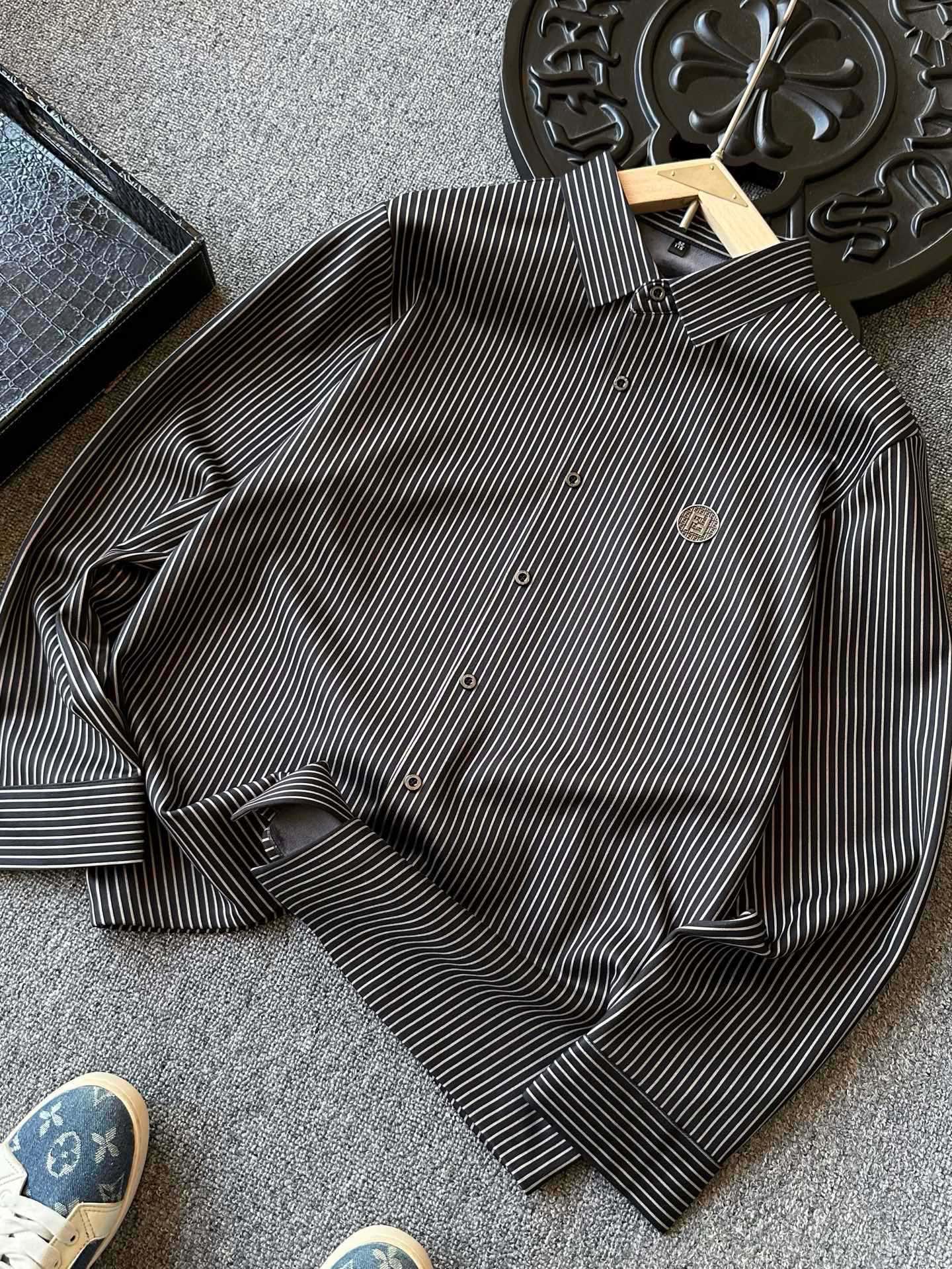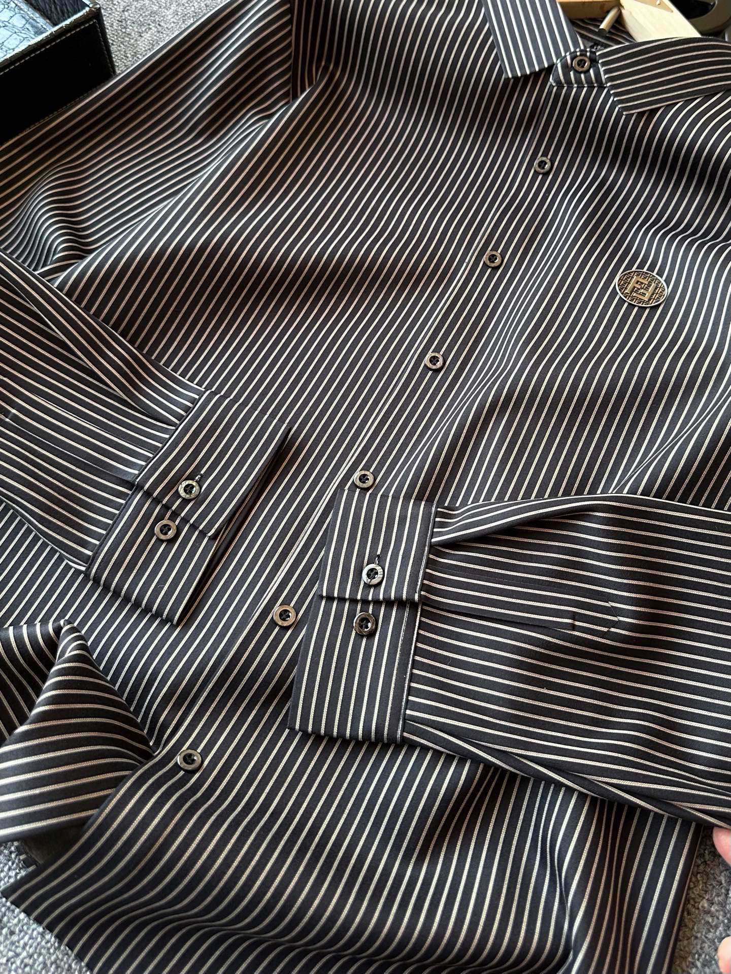 人气爆款 Fendi 芬迪双F专柜新品高奢条纹加绒衬衫 恒隆在售万元级 款号 2427