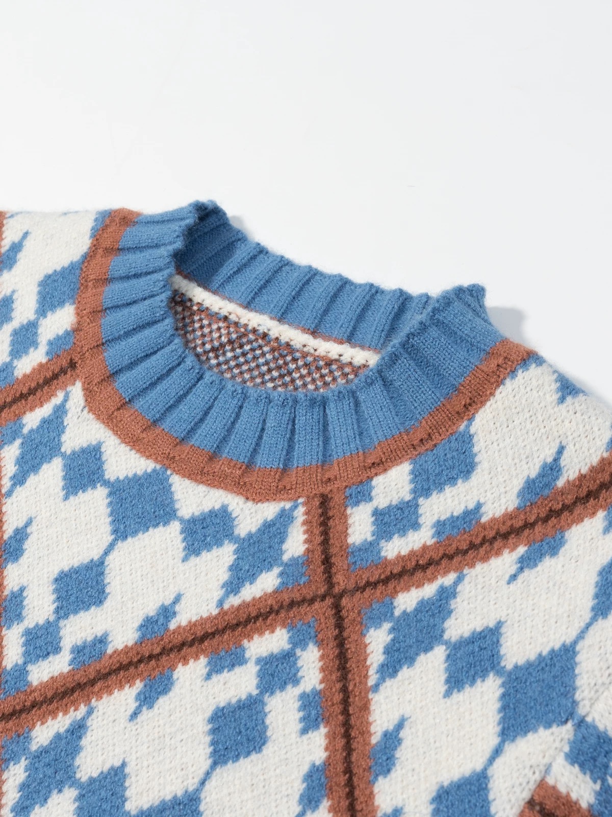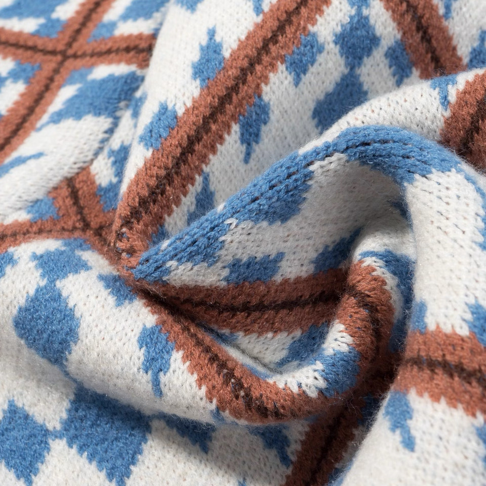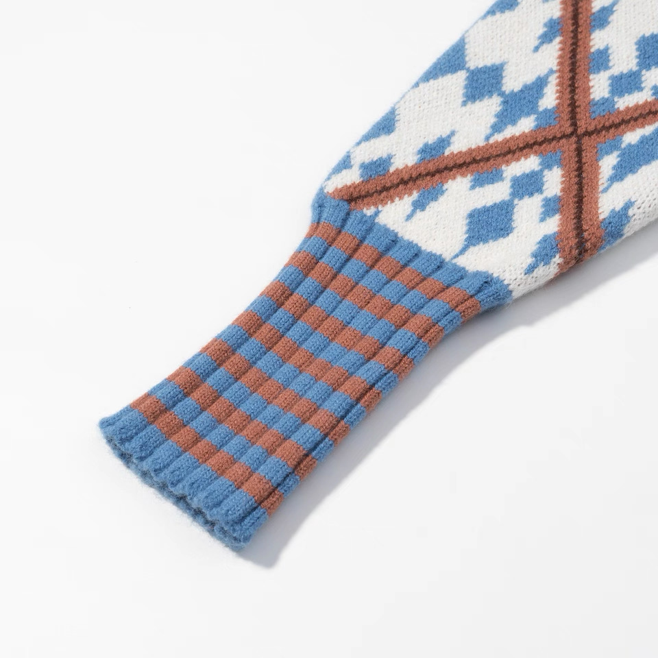 柔和的蓝白棕撞色 经典菱格提花 自带复古学院感 温柔又不失俏皮