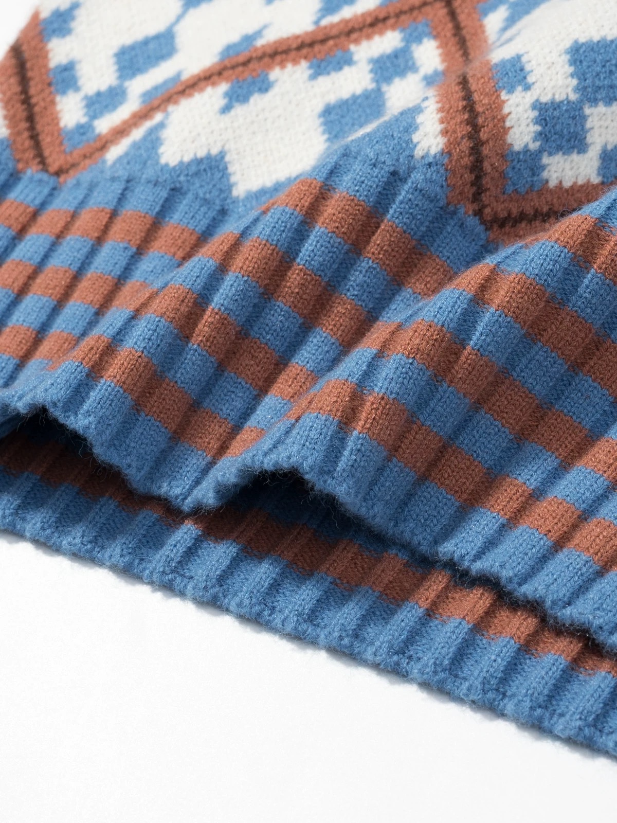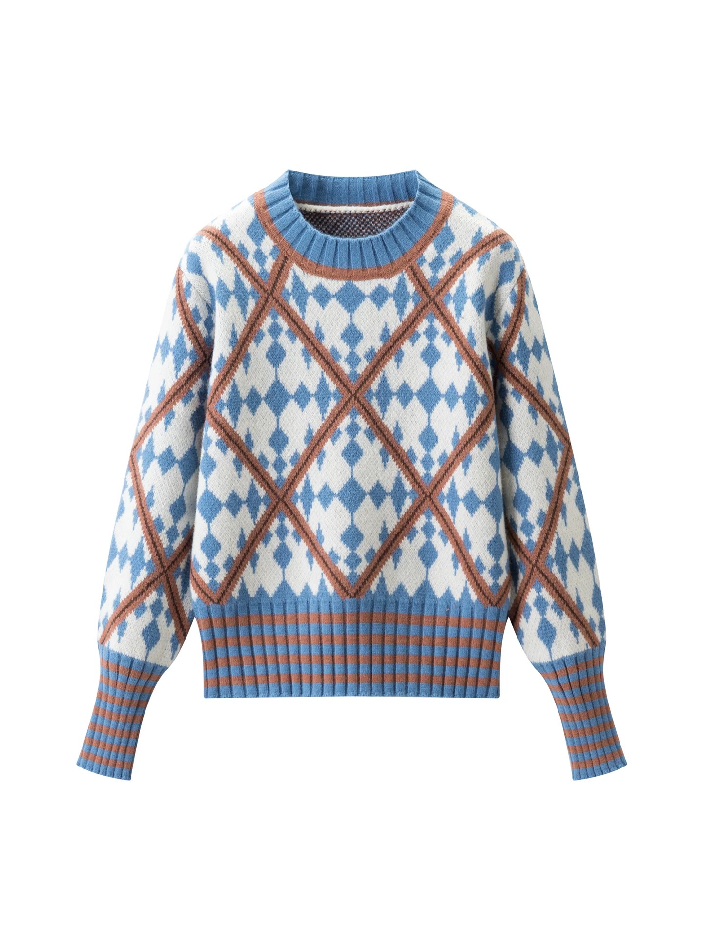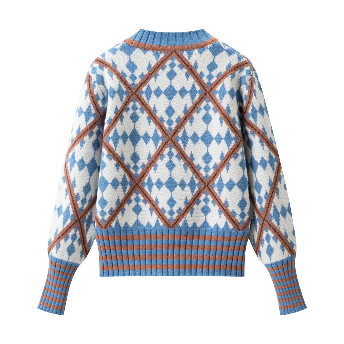 柔和的蓝白棕撞色 经典菱格提花 自带复古学院感 温柔又不失俏皮