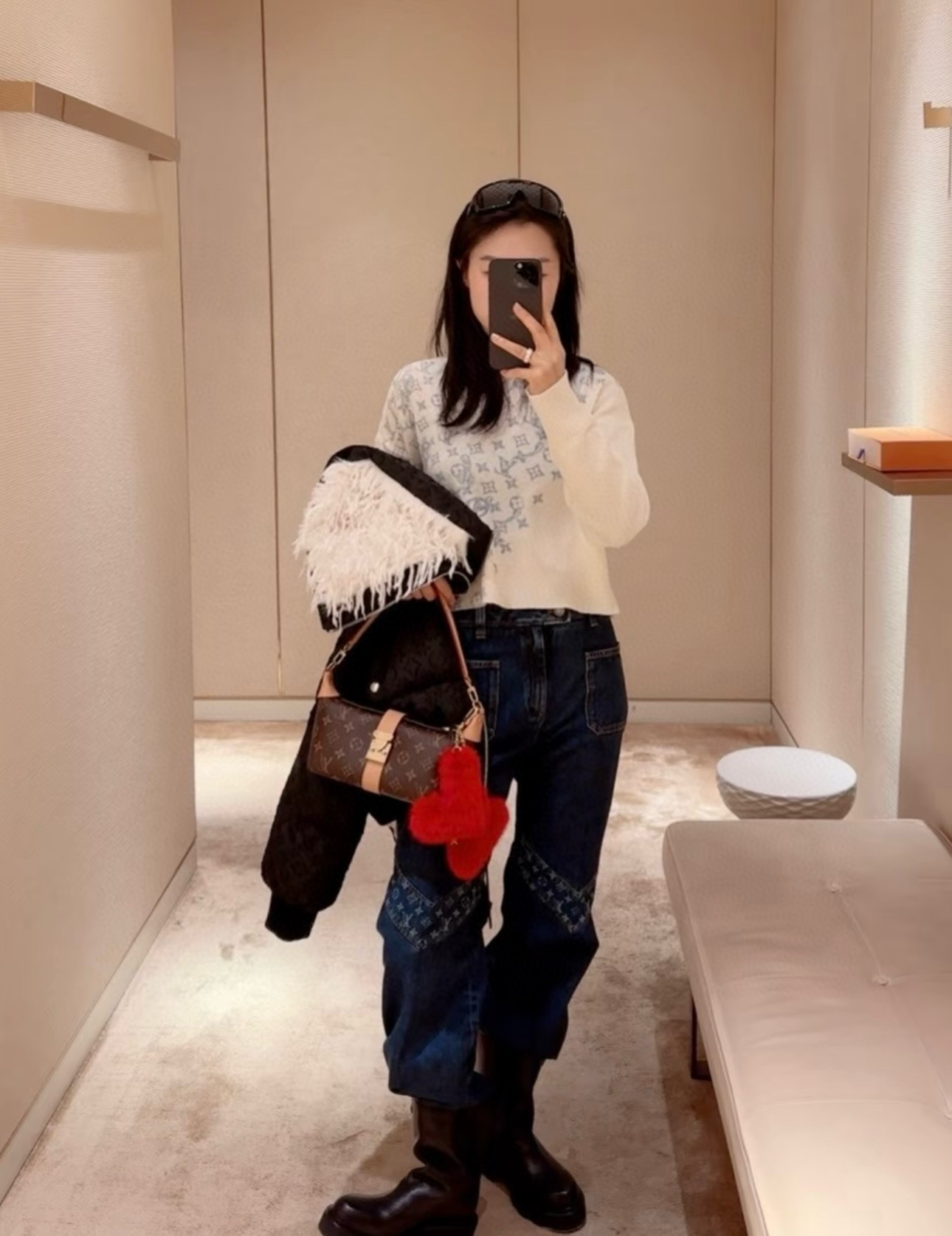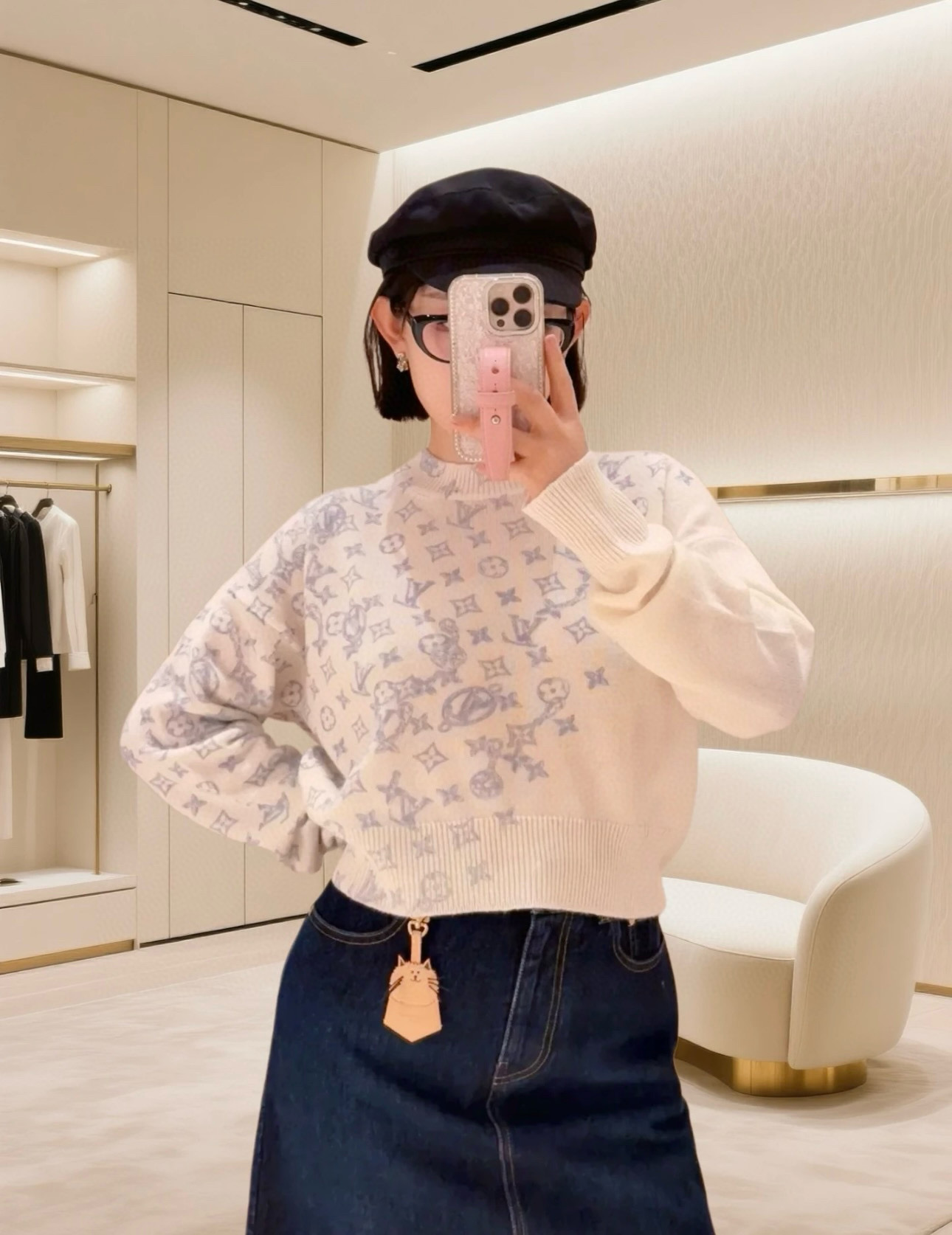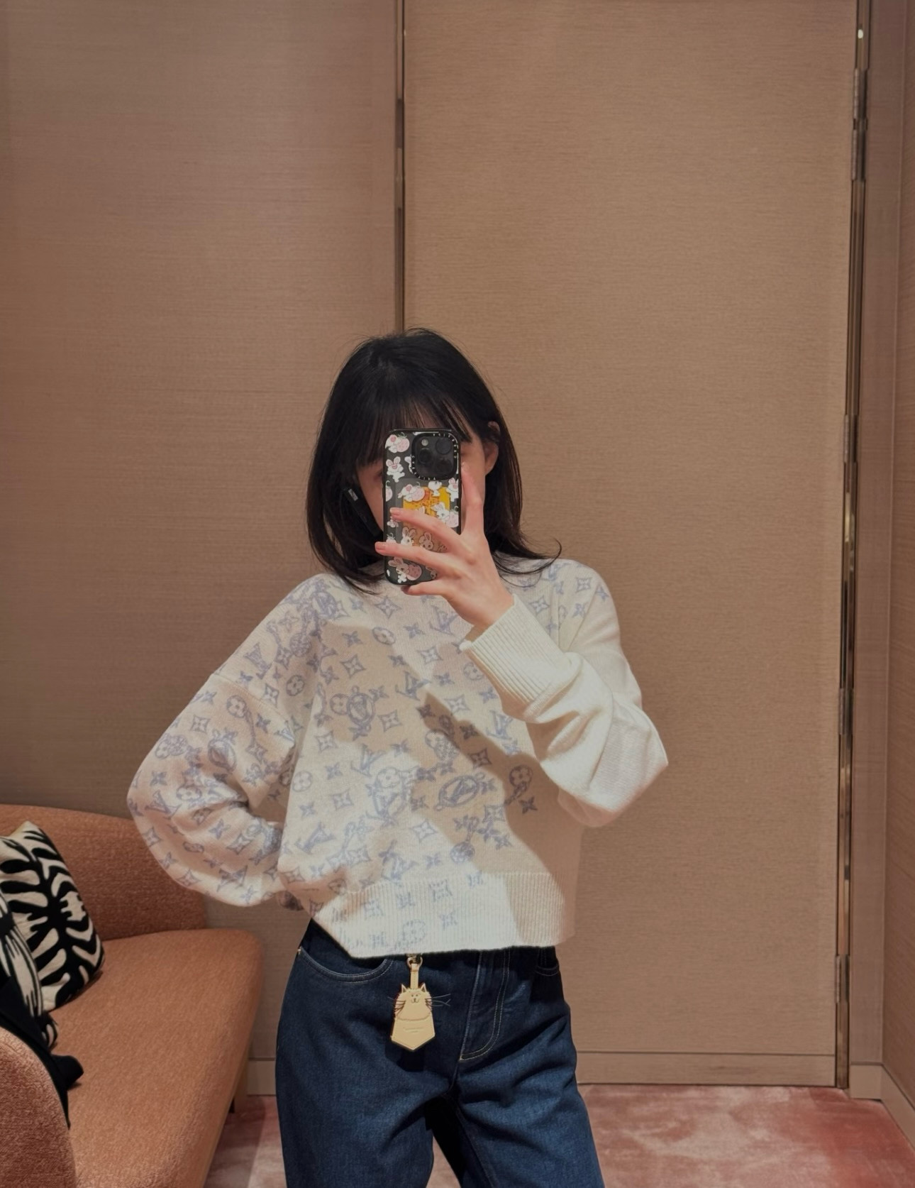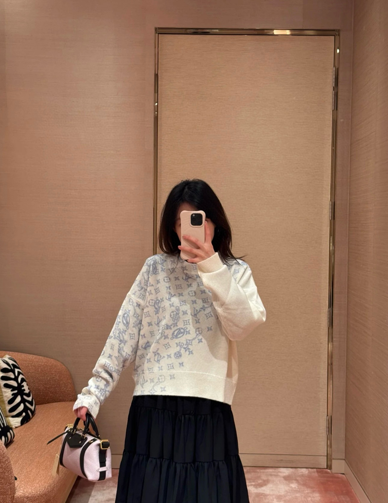 Louis Vuitton LV 驴家斜印字母四叶草圆领长袖针织毛衣