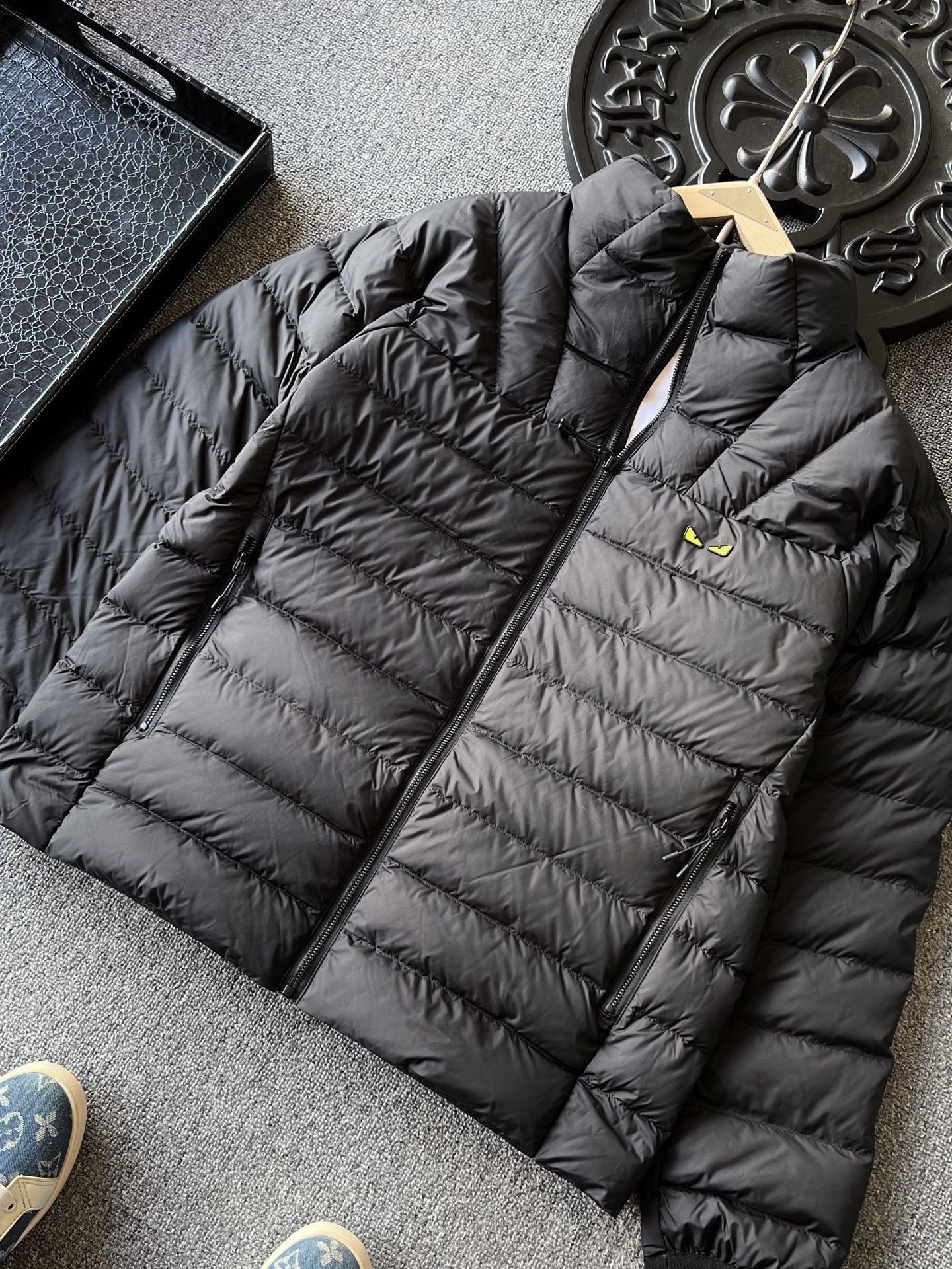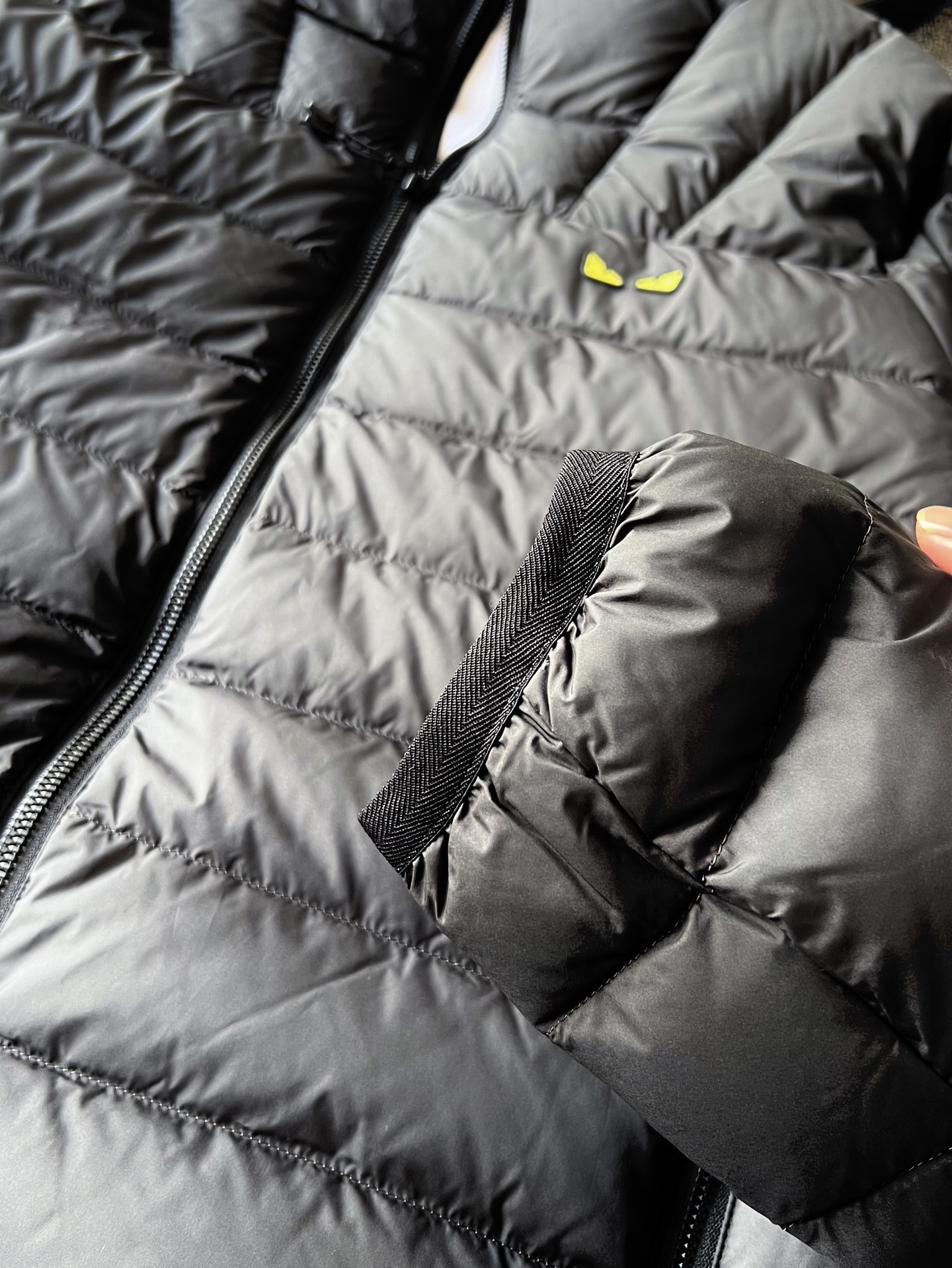 细节细节再细节 Fendi家商场新款羽绒服 极具设计感的一款多拼接插肩袖款 经纬双向拼接锁绒技术 特别好看 胸前浮雕双层黑黄组合凹凸硅胶芬迪小眼睛 十分简约精致 内里每一处全部做包边精湛做工