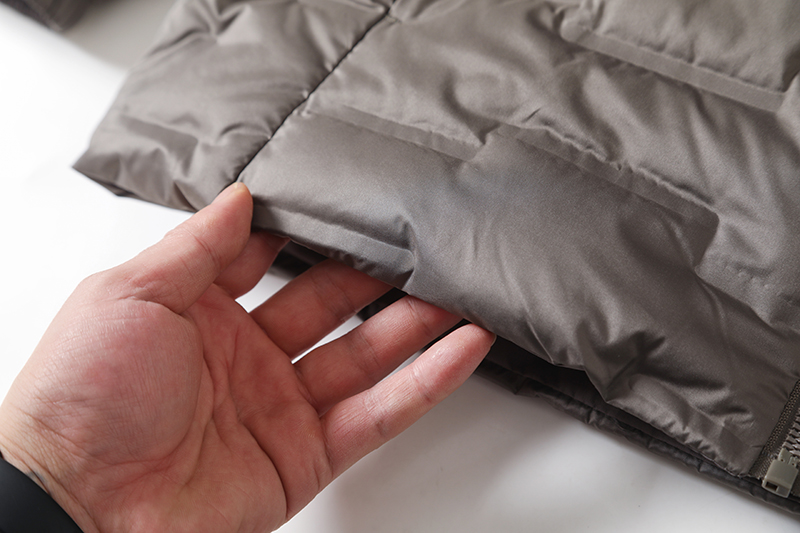 一款轻量双面穿白鸭绒羽绒服 绒衣含量 80 洗标处明确标明每个尺码的充绒克重 一目了然