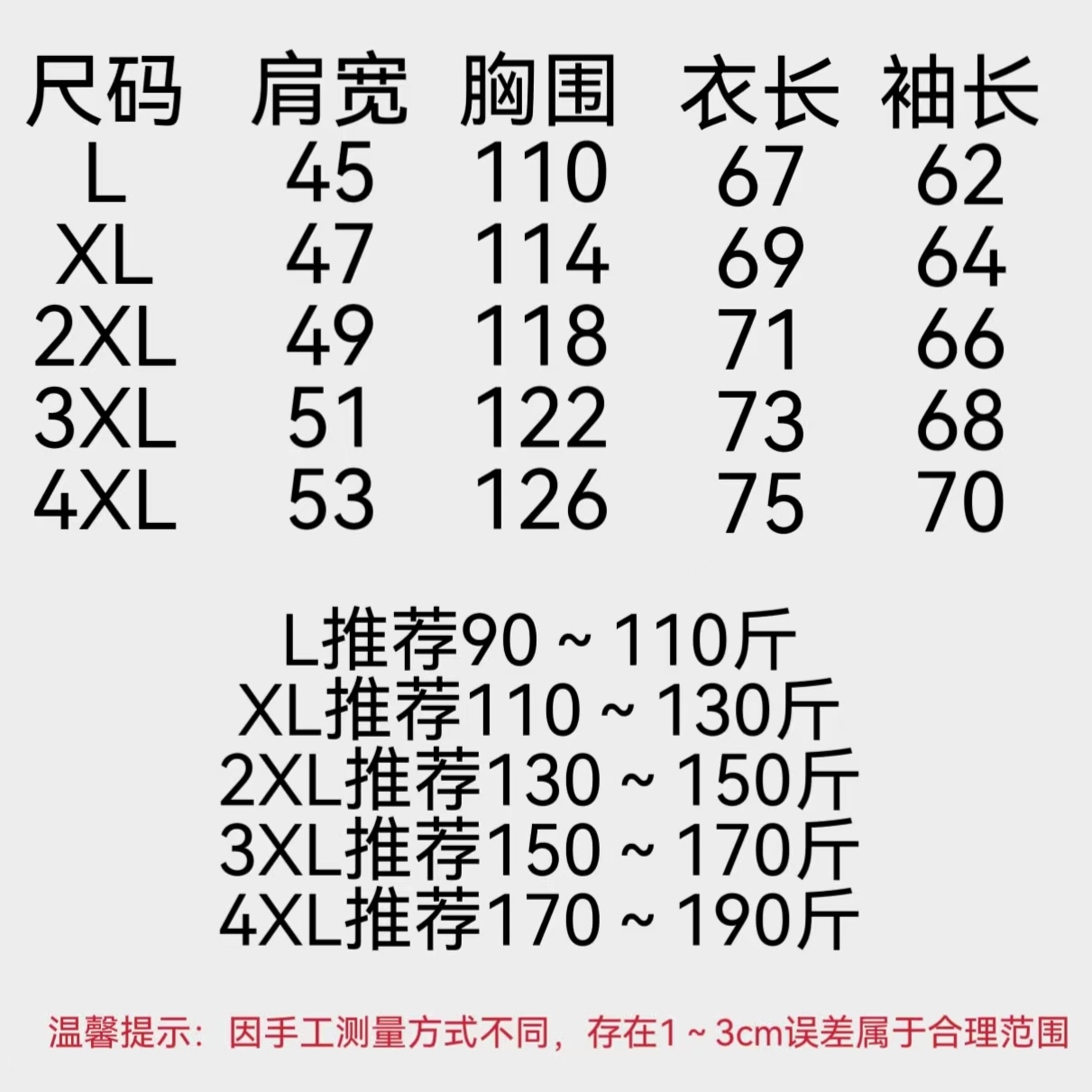 尺码 L 4XL