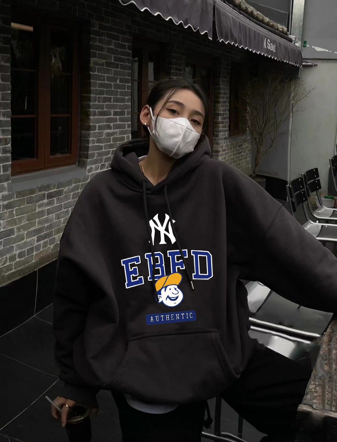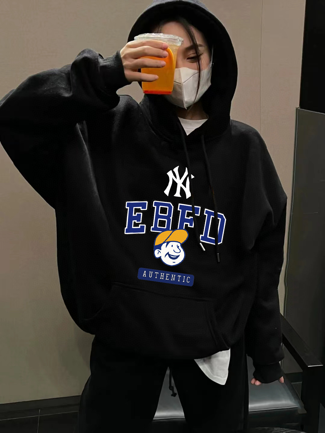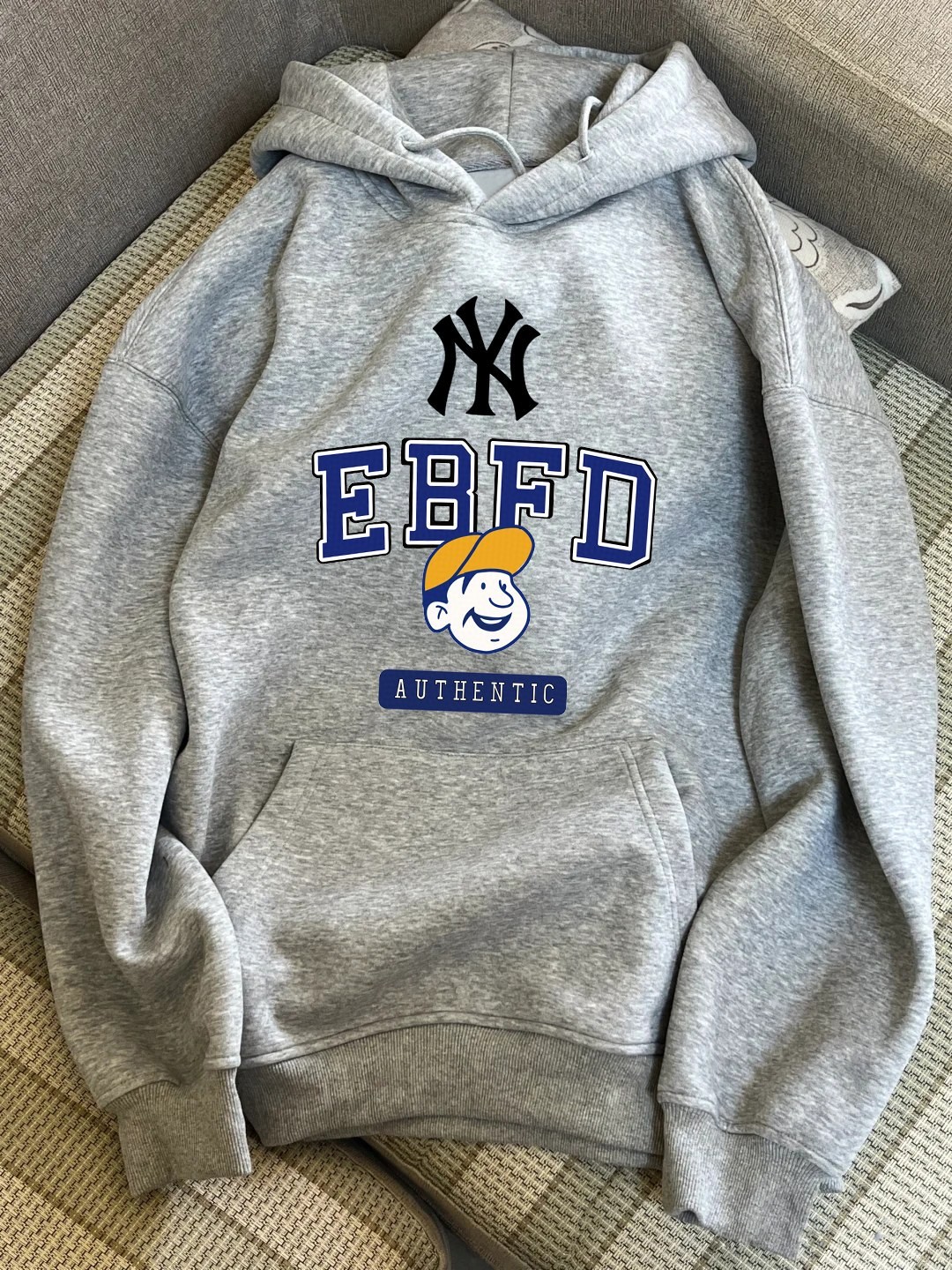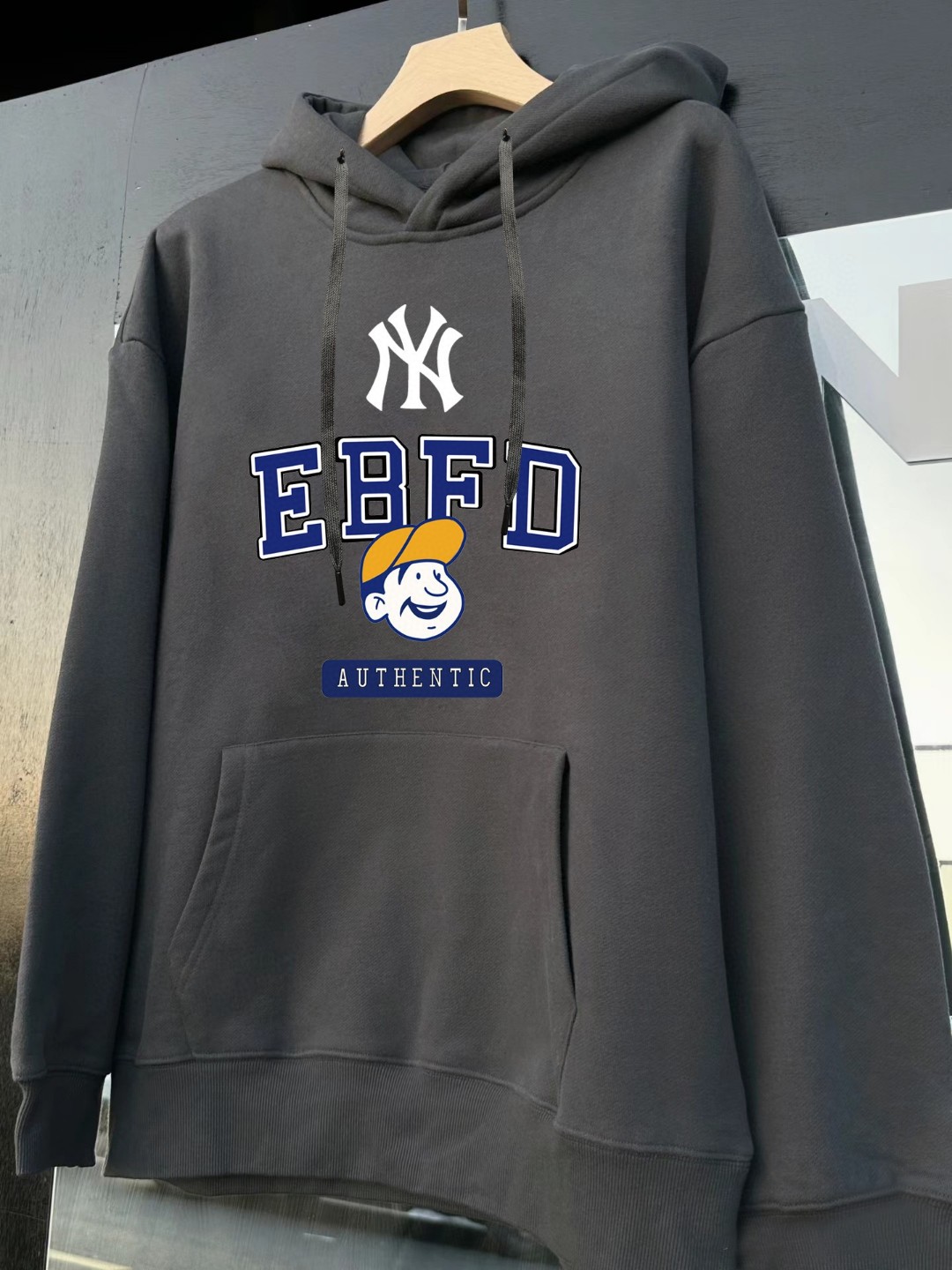 MLB NY官网同步最新款字母男孩棒球logo印花男女情侣同款连帽卫衣