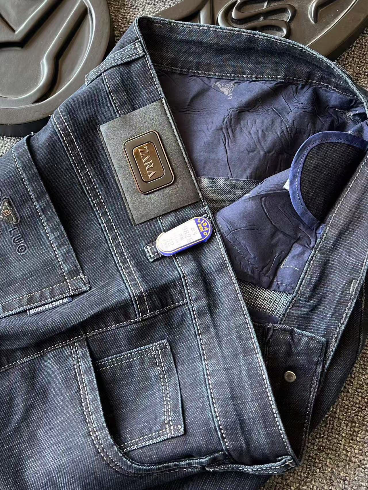 细节细节再细节 ZARA Fendi合作款简约轻奢商务休闲牛仔裤 立体打磨工艺 层次感很好 腰口ZARA金属皮标 口袋做了芬迪双F标识 精湛做工 精致细节
