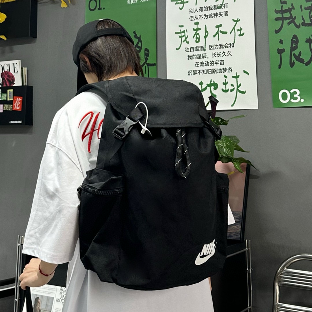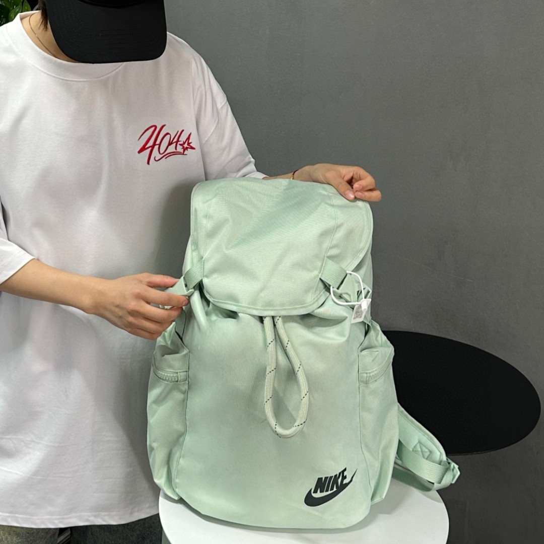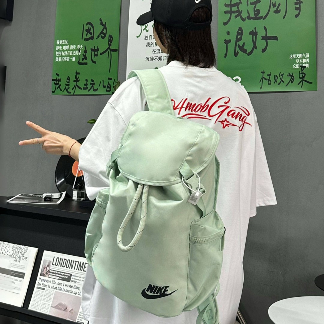 顶级版本 Nike大抽绳设计小logo双肩包男女同款 抽绳收口设计 收纳空间超级大 包包采用顶级材质定制 非常厚实 耐磨耐用 包后面设计超厚背垫 背起来特别柔软舒适 出门旅行 登山 健身 上学都非常适用 颜色 黑色 绿色 米白 尺寸 392715
