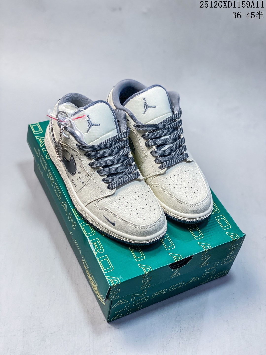 海外爆款限量发售 Nike Jordan Air Jordan 1 斯图西联名 米灰印花 高端定制 低帮 复古 减震 防滑 耐磨 篮球鞋 定制鞋盒 大厂纯原品质出货 超高清洁度 皮料切割干净无任何毛边 细节完美