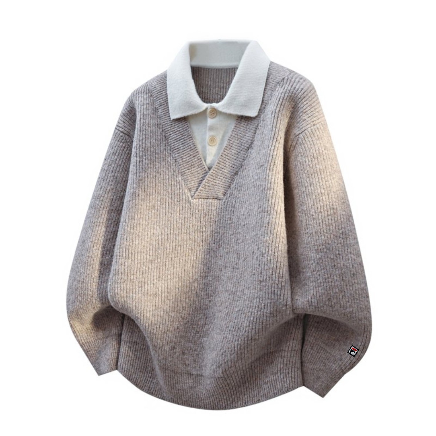 150201060 - FILA斐乐25品质秋冬V领假两件潮流针织衫毛衣外套 优质柔 416156
