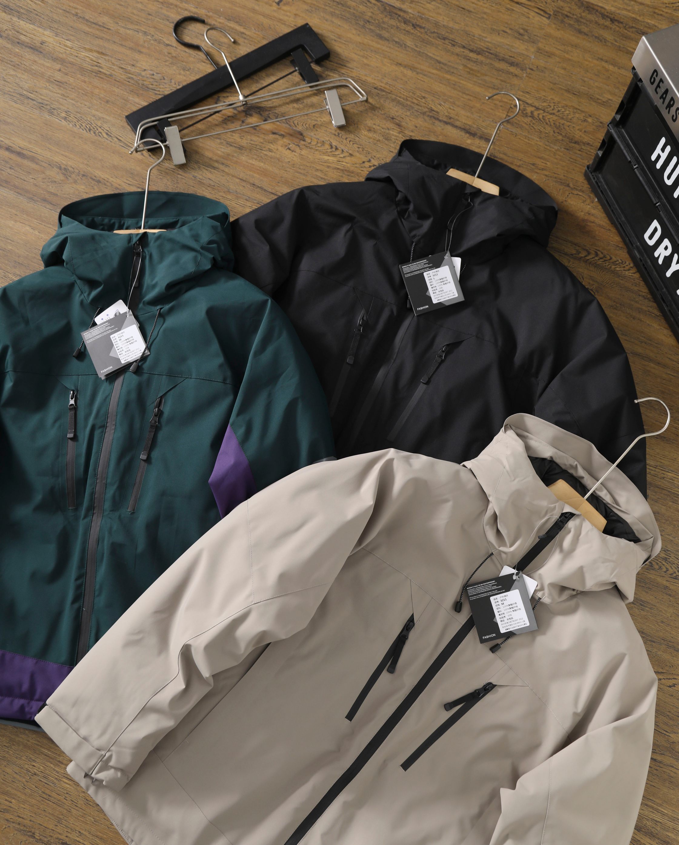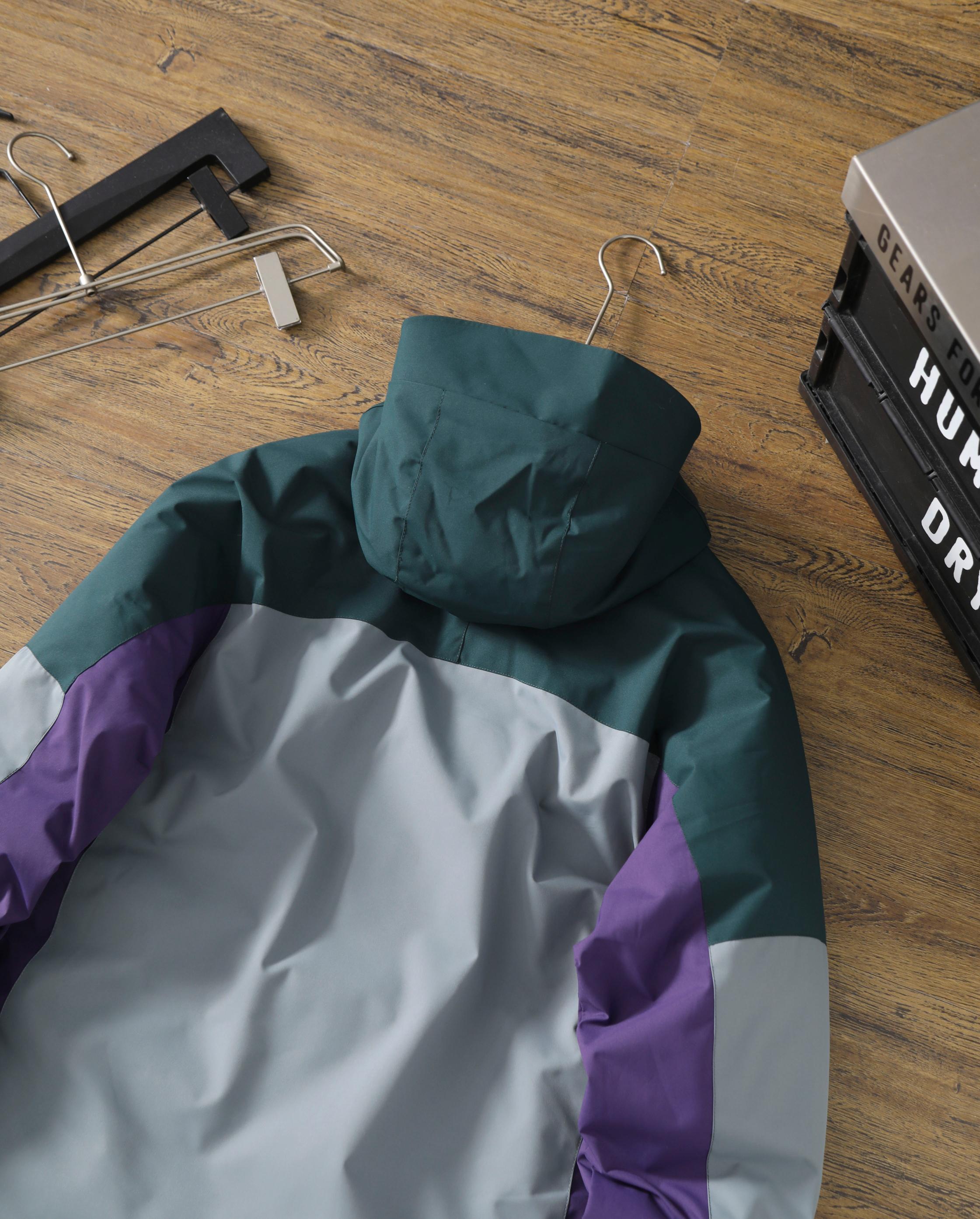 穿着方式 可作为情侣款 搭配款穿着 功能性 一防水 防止外部雨水进入夹克内部 防泼水 防止水侵湿面料 将水快速弹落透湿 将服装内部汗汽排除至外部防风 防止风进入内部