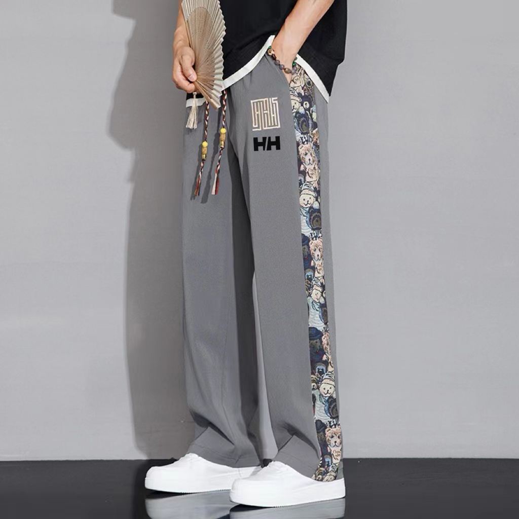 55211948 - ZDZH 工作室 海丽汉森HH国风刺绣休闲裤韩版潮流拼接帅气 423469