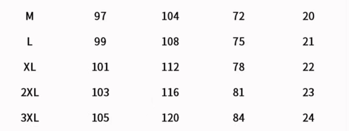尺码 M 3XL
