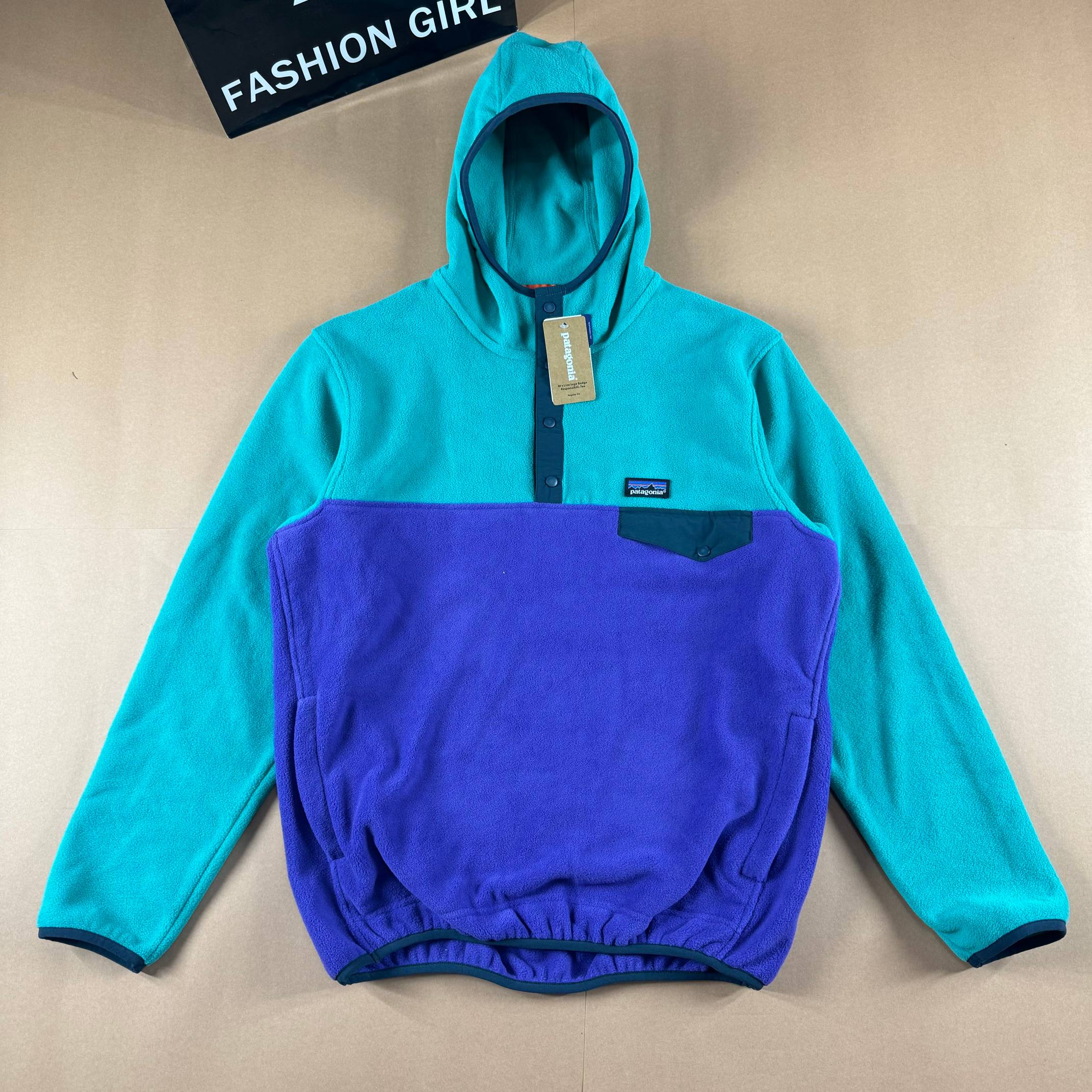 巴塔哥尼亚Patagonia 户外抓绒保暖拼色撞色口袋连帽帽衫男女同款