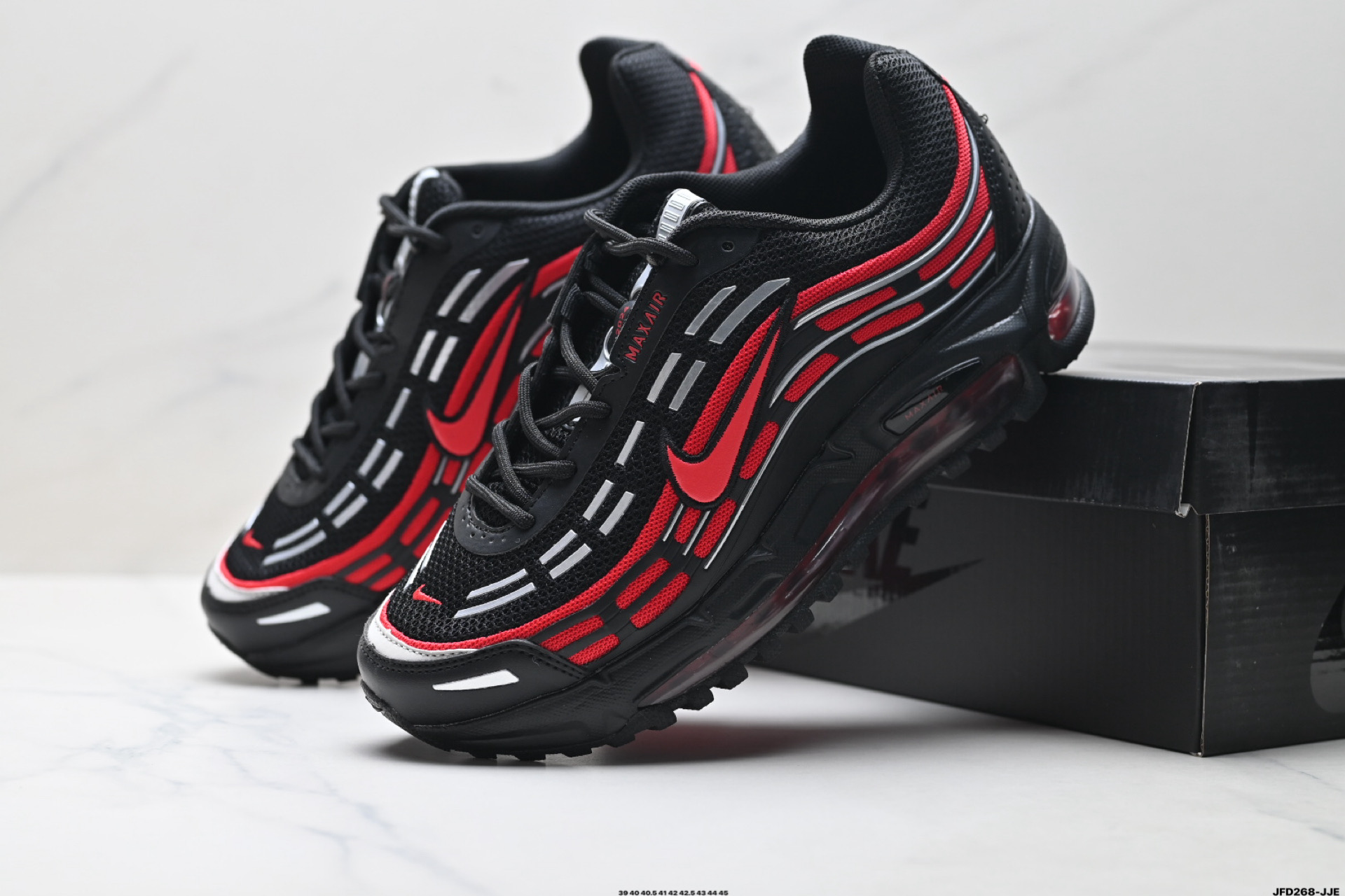 搭配全掌式 Max Air 气垫为步伐注入充沛活力中底完美拉帮 钢印注胶孔一应俱全 半透明中底和外底为整体造型画龙点睛 打造舒心时尚