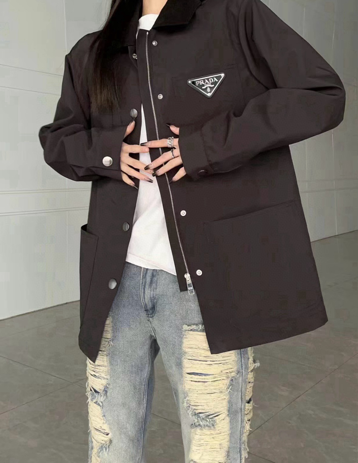 PRADA普拉达新款三角标工装夹克外套