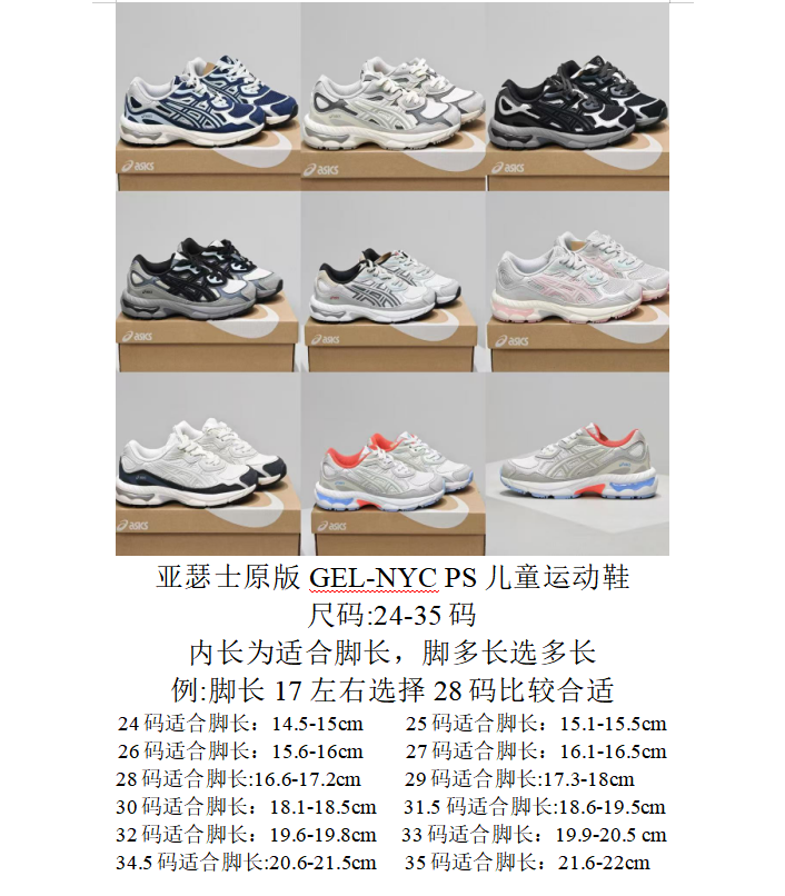 亚瑟士 Asics Gel NYC 系列低帮童鞋复古休闲运动慢跑鞋 1204A176 102